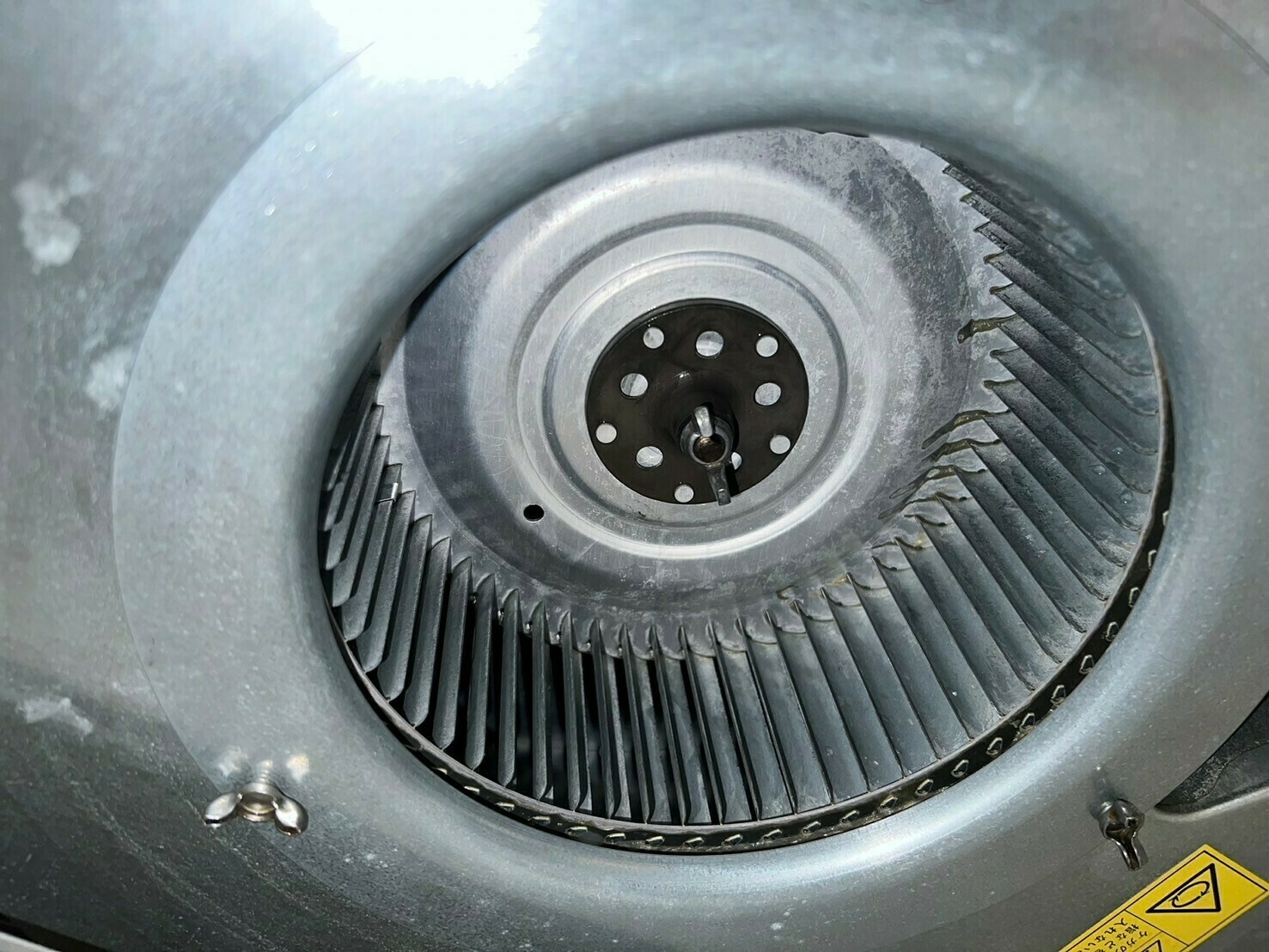 料理中に飛び散った油汚れは空気中にも含まれ、整流板やシロッコファンに付着し、その油汚れが冷めながら固まり、空気中のホコリなどと一体化して、油汚れの塊となります。