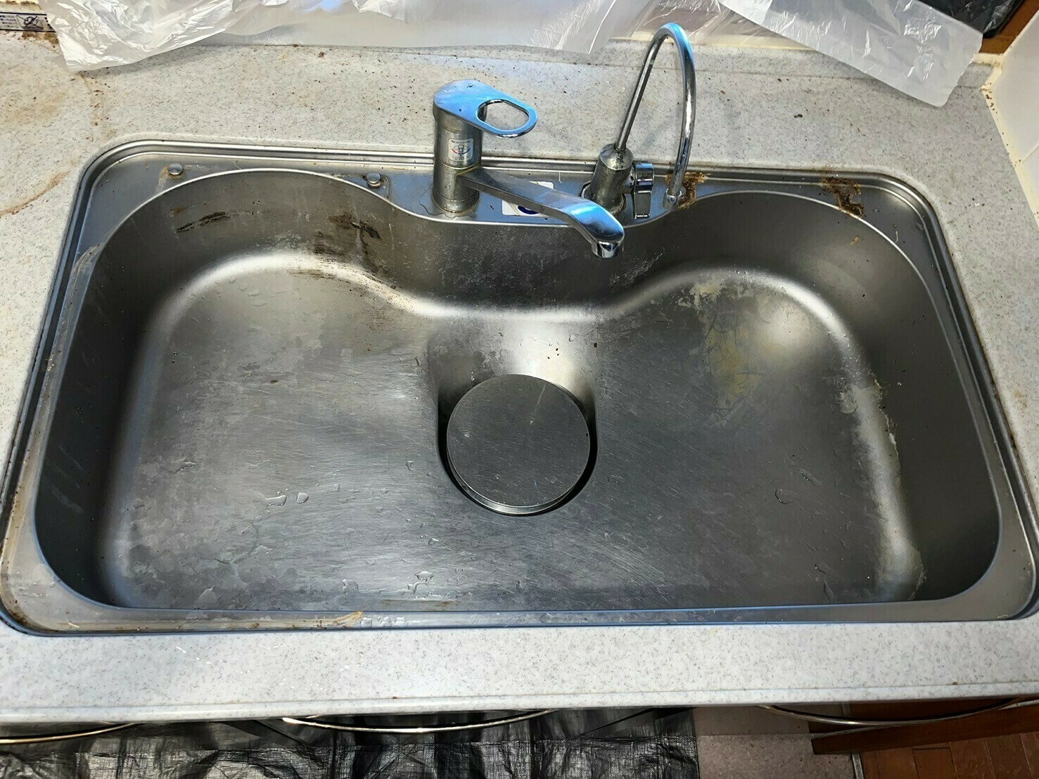 シンク内には、カルキ汚れや油汚れ、石鹼カス汚れが多く目立っていますが、向かって左側部分は黒カビが発生している箇所があります💦