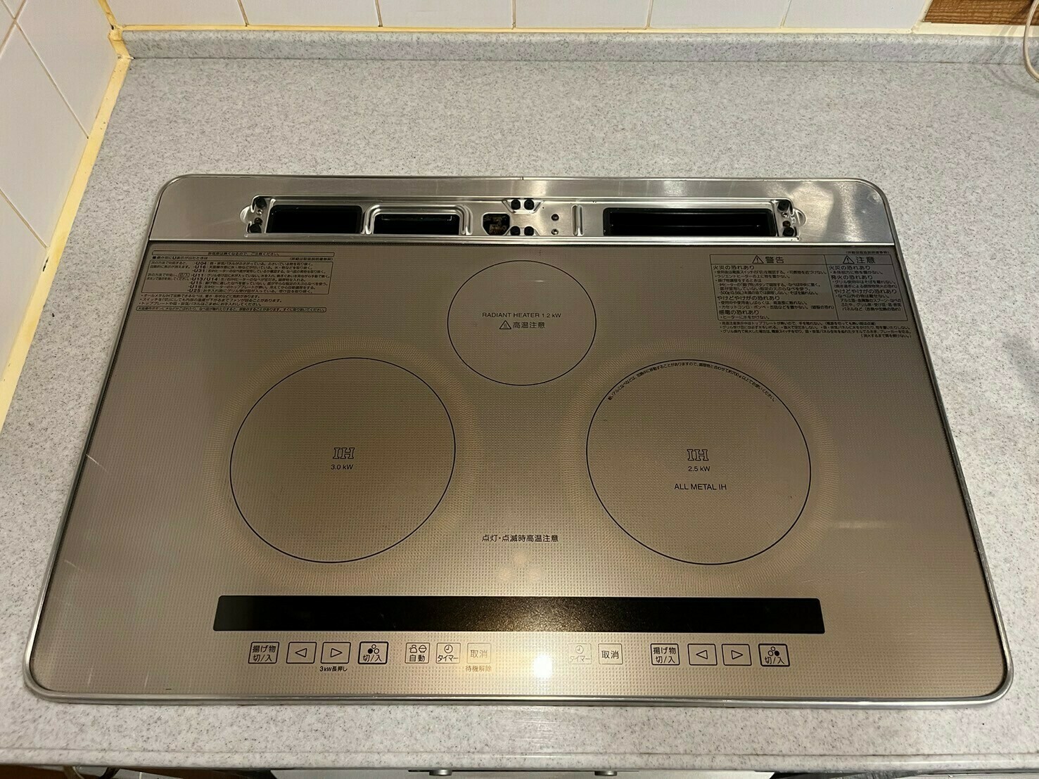 サムネイル画像にもあったこちらのIHコンロのガラストップ部分は、焦げ汚れで目立っています😱