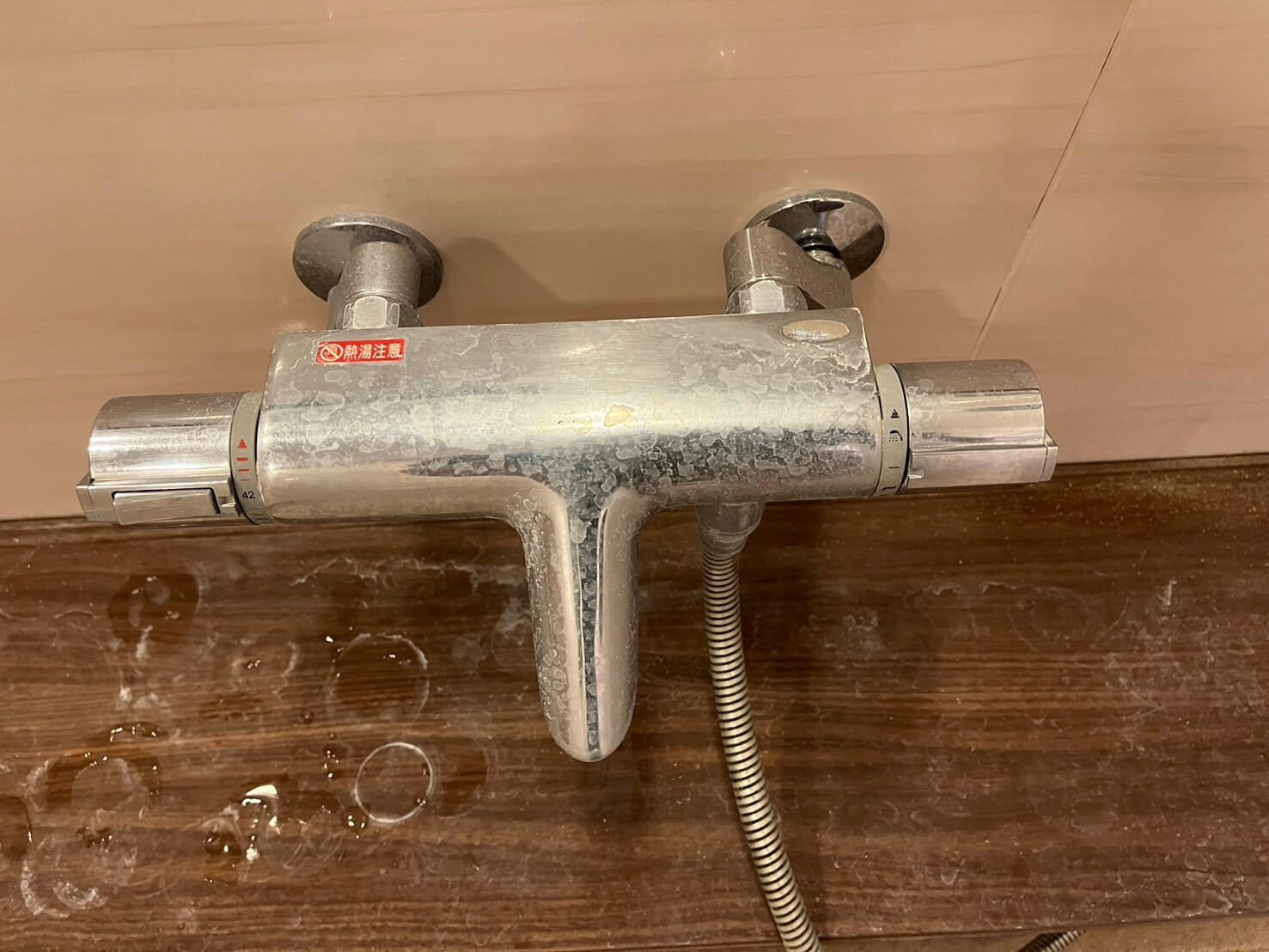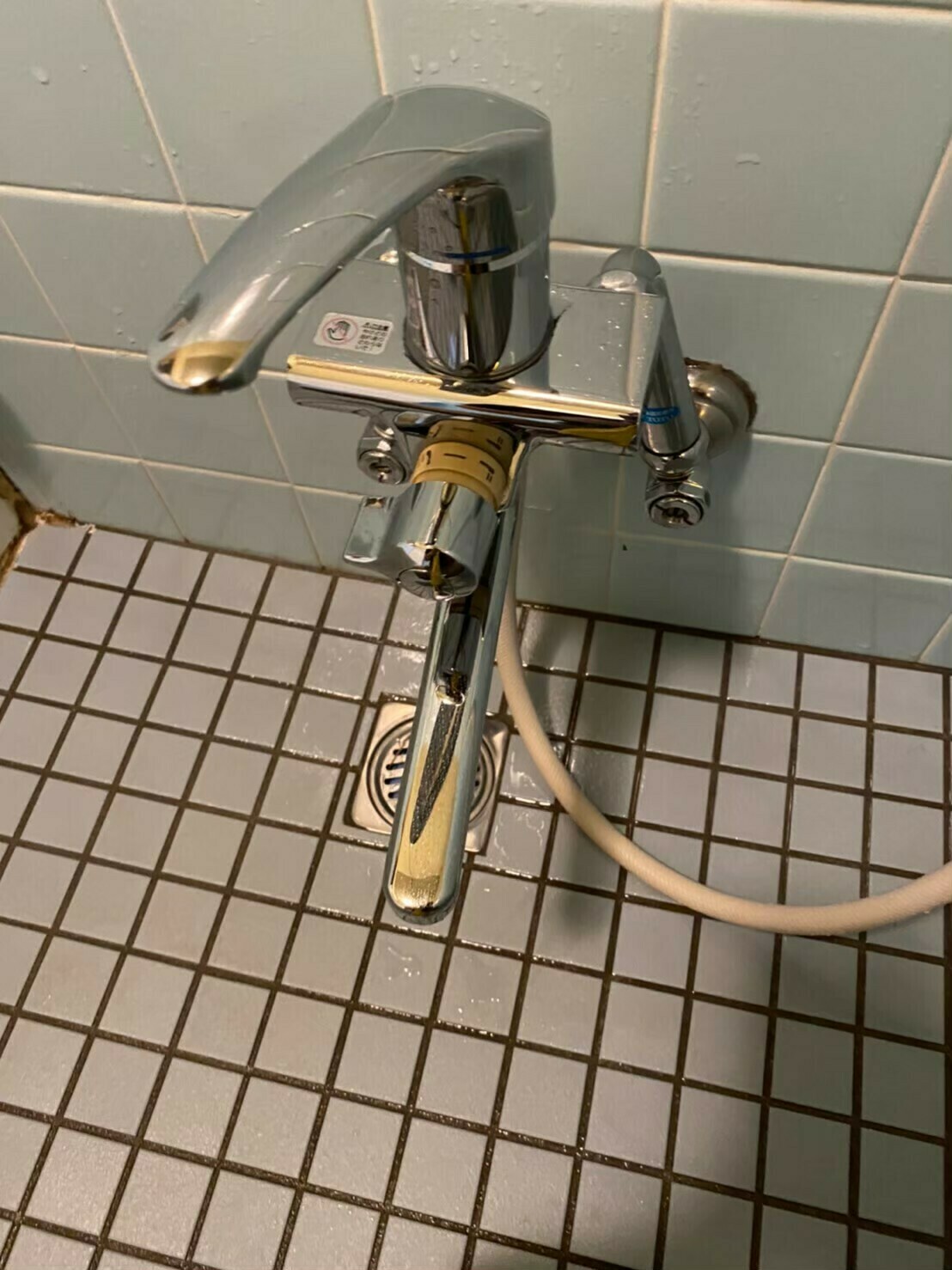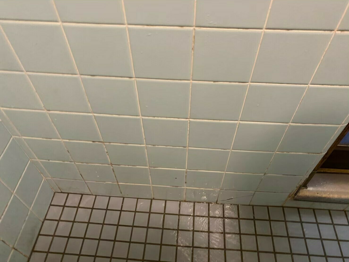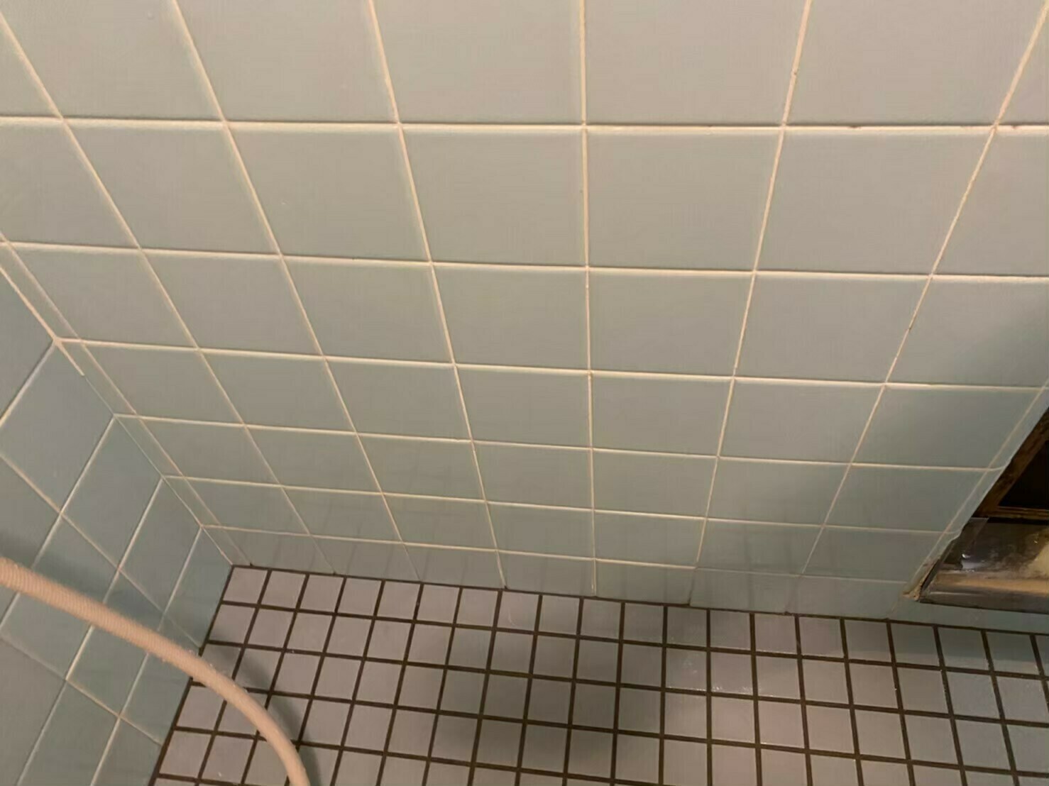 もともとはこのように、浴室のタイルの間の黒カビや蛇口の水垢が溜まっている状態でした。