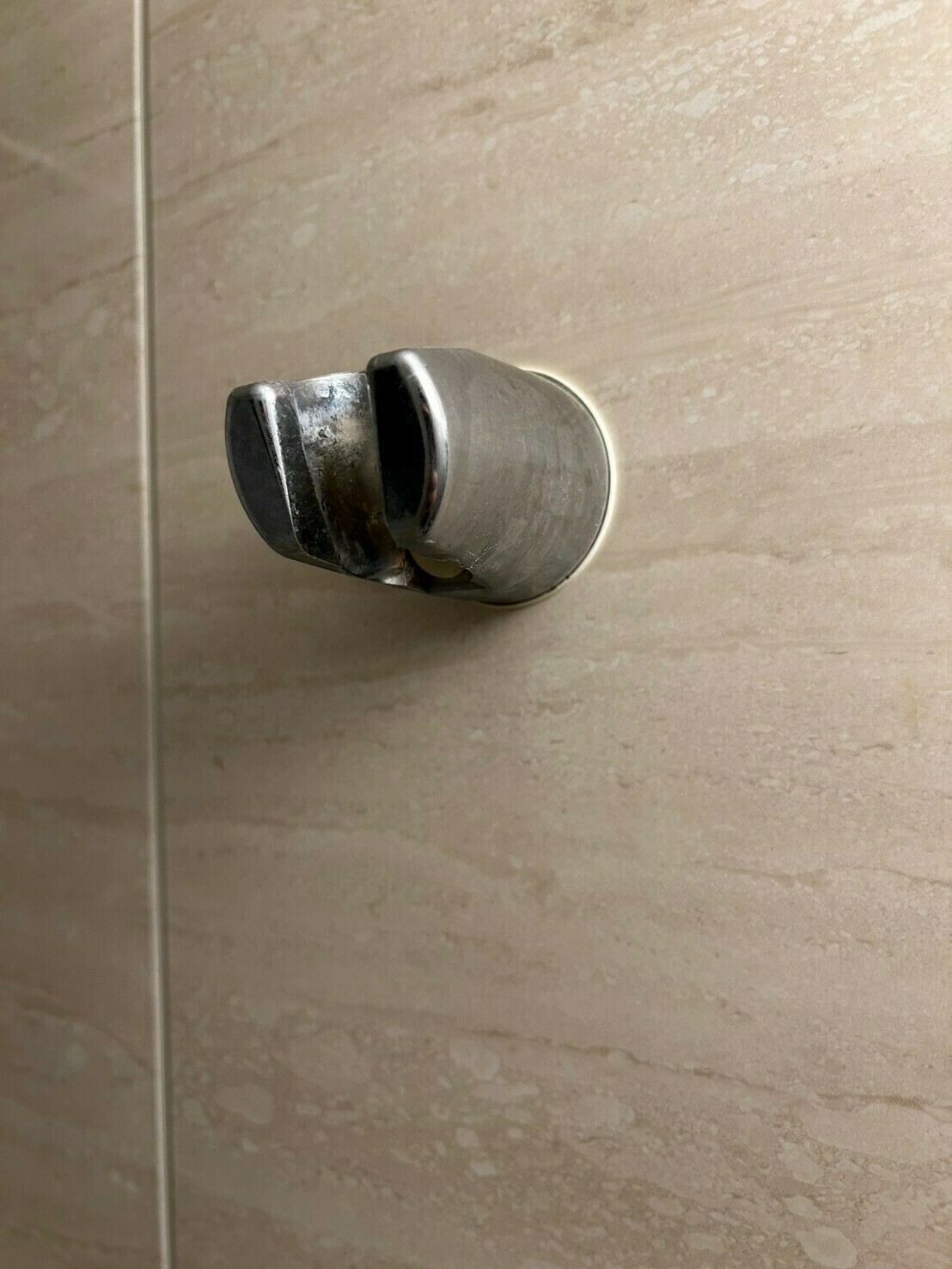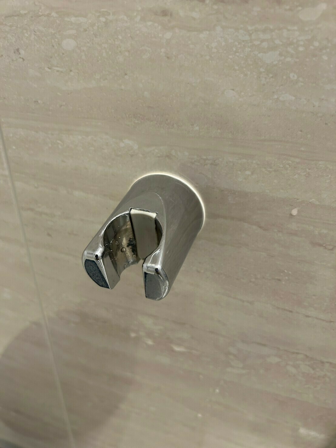 シャワーヘッドをかけるフック部分は、ウロコ汚れがついていますね💦