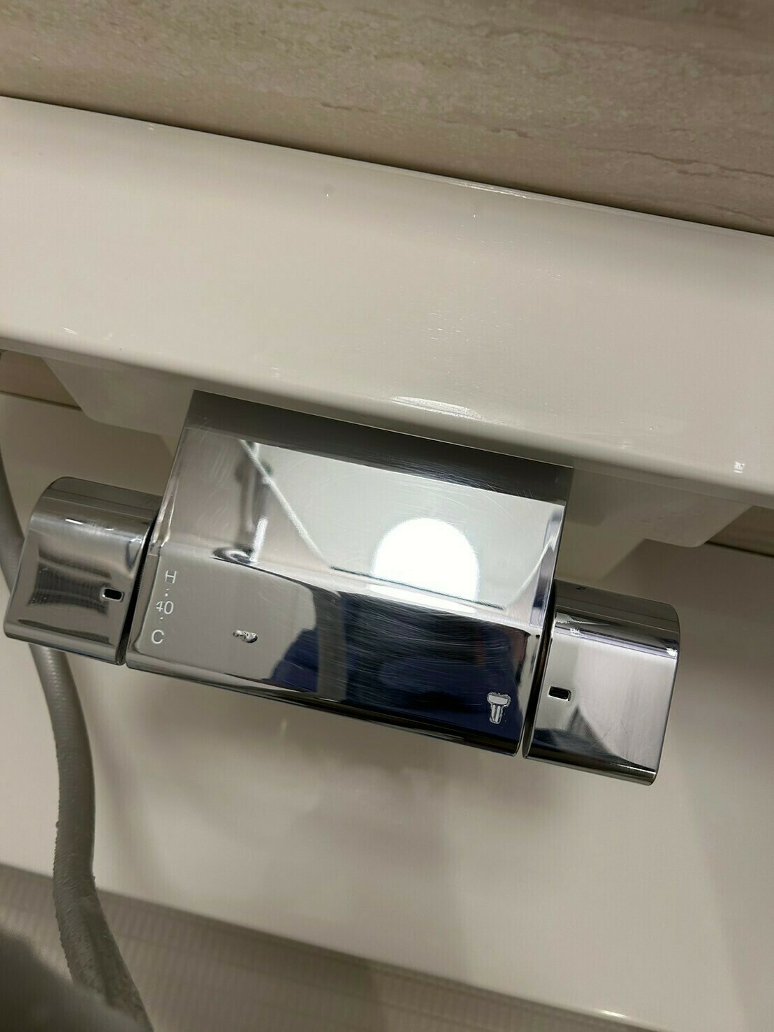 シャワーヘッドをかけるフックはウロコ汚れがなくなり、きらっとカッコよくなりました😆