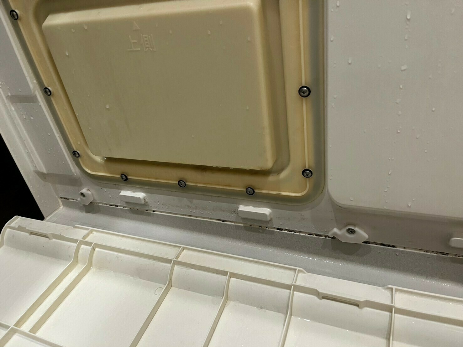 エプロンを外した時に見られる状態です。黒カビが発生しています💦