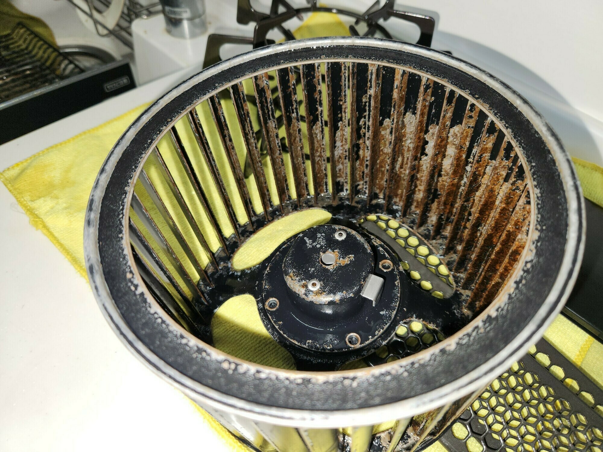 レンジフードのシロッコファンは油汚れでギタギタですね😨