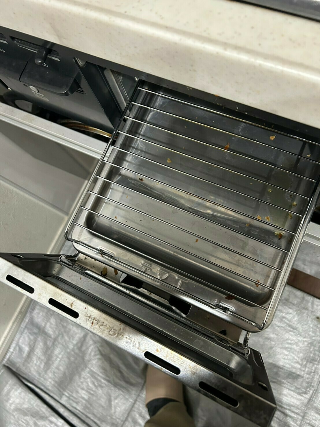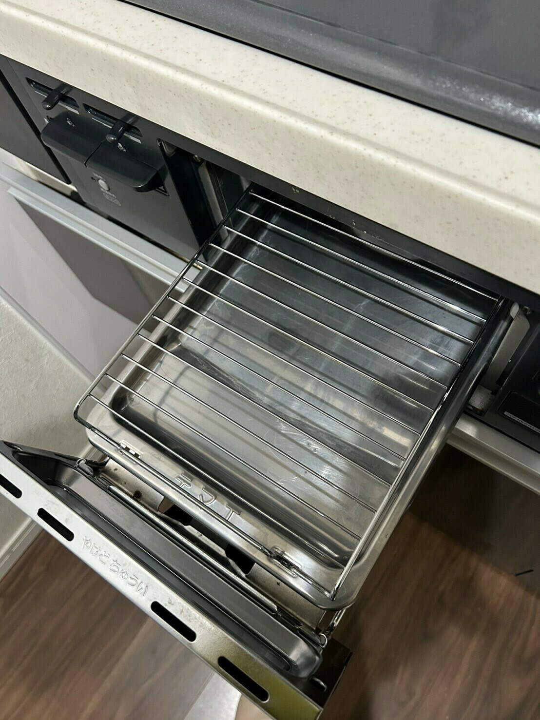 お魚焼きグリルの受け皿と網の汚れは完全に落としきることができ、ピカピカになりました🥰