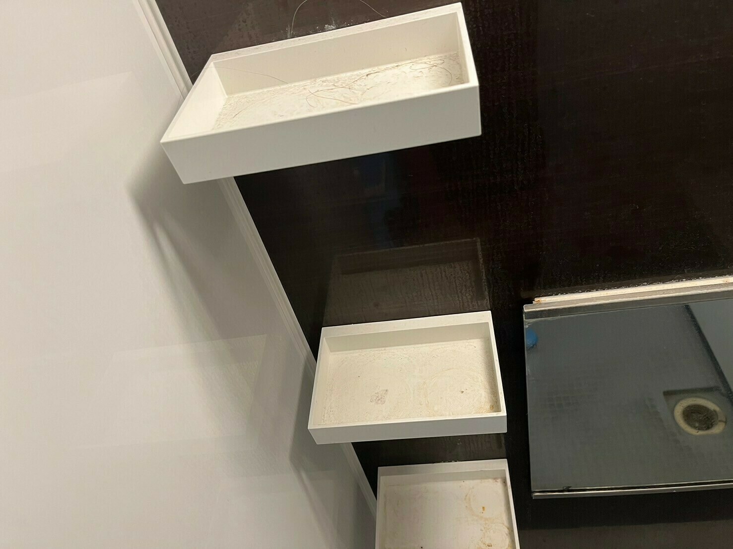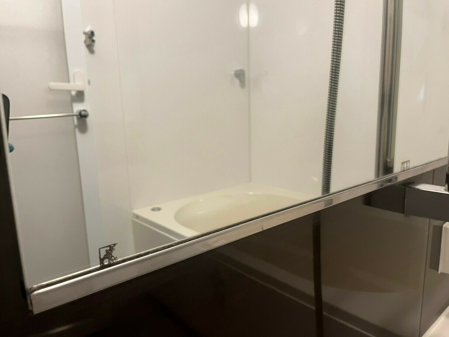 収納化粧板にはシャンプー等置いていた汚れがついていますね😵💫