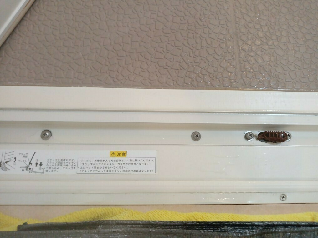 浴室と脱衣所の境目の扉のサン部分には、埃や石鹼カス汚れがついています💦