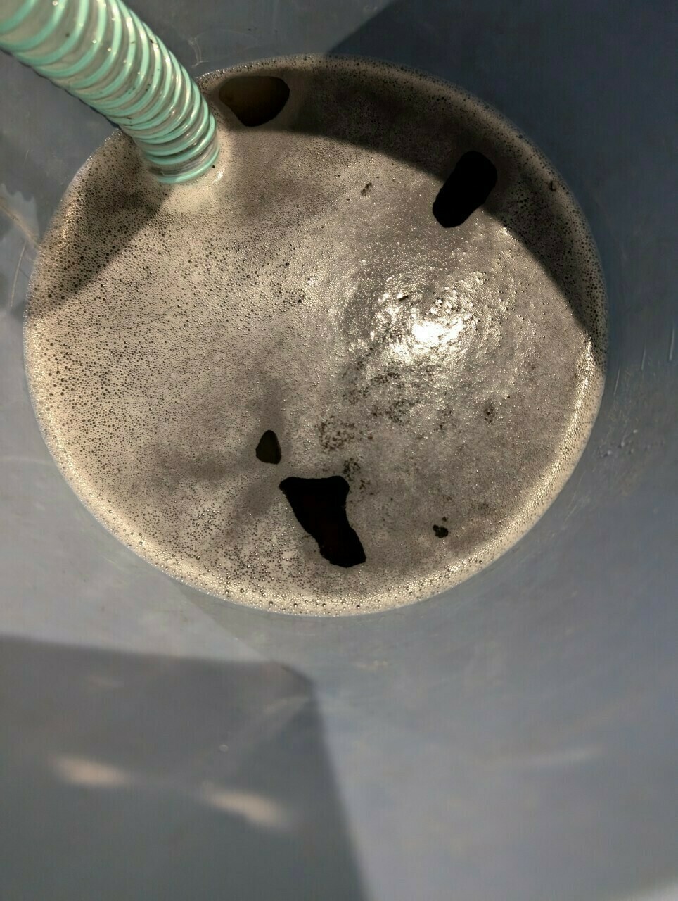泡で見えにくいですが、黒い汚水が出ました!