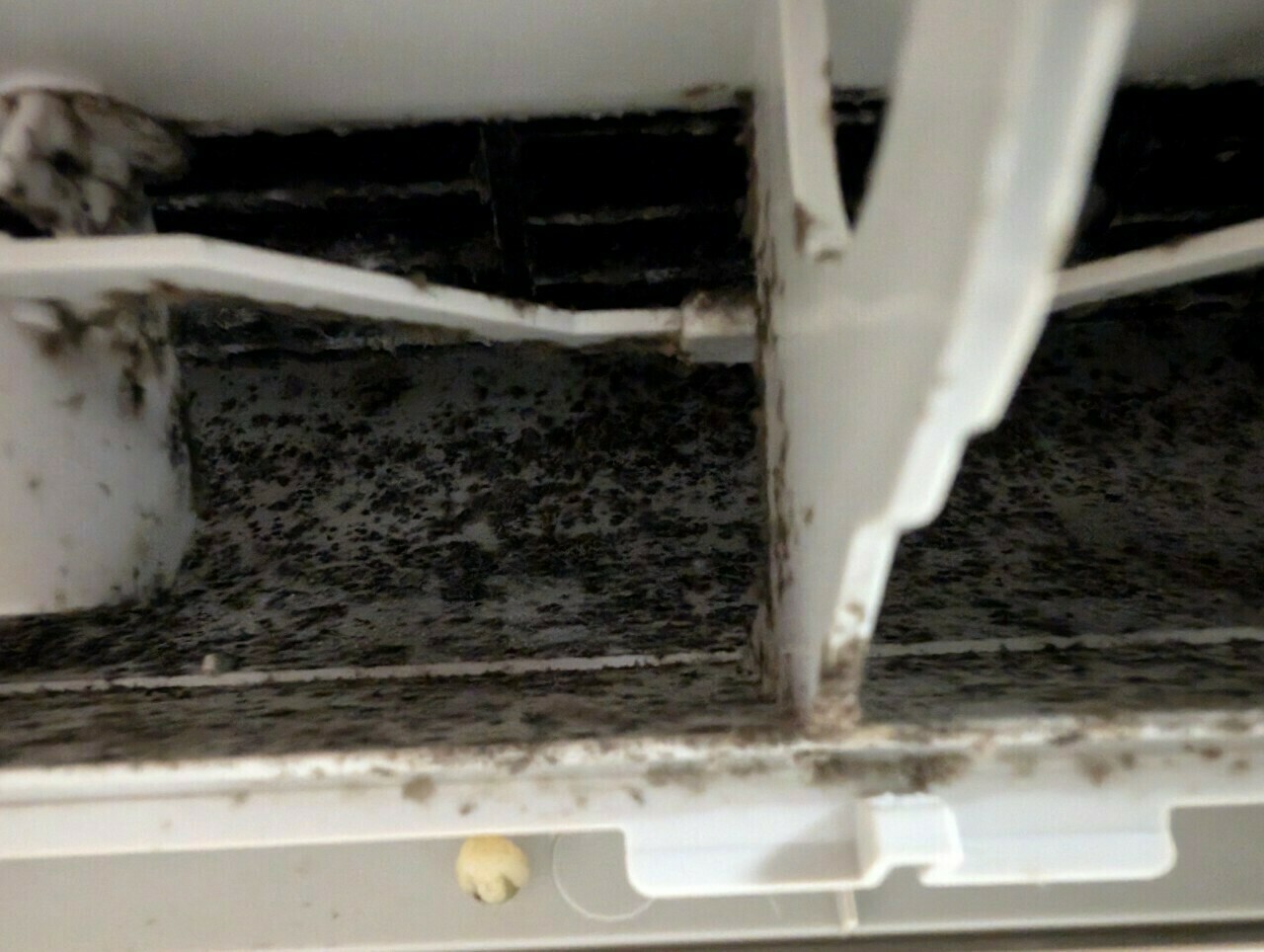 送風口にはダルメシアン柄の以上の黒カビ汚れが発生しています😵💫