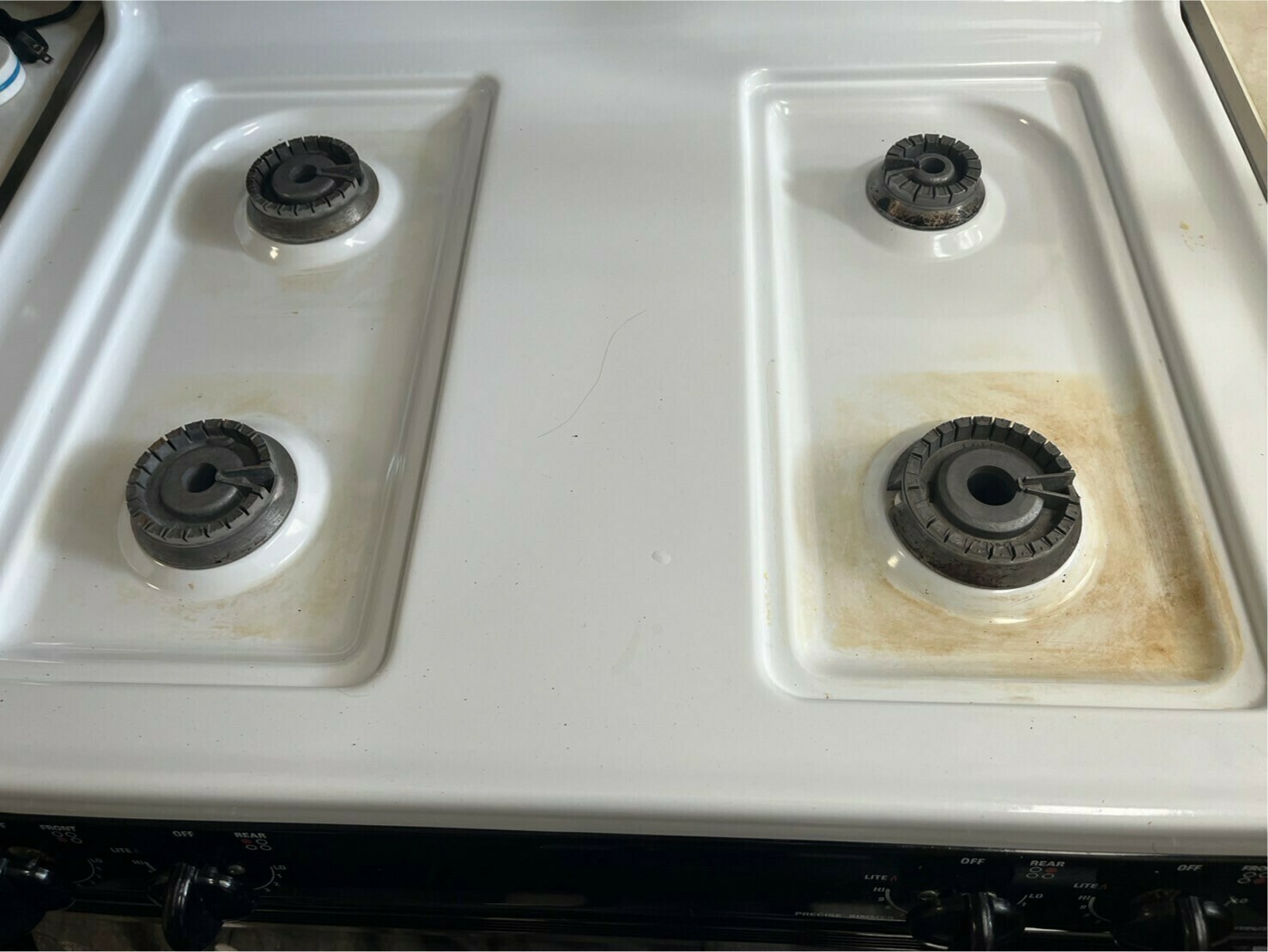 完全に落としきることはできませんでしたが、油汚れや焦げ汚れはなくなり、清掃前に比べると汚れは目立たなくなりました!