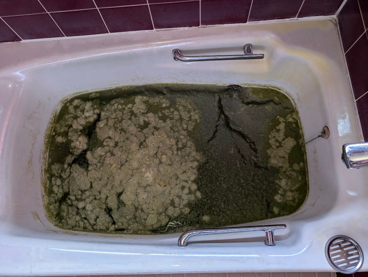 今回行った、横浜市青葉区でのエアコンクリーニングで排出された水がこちらです。