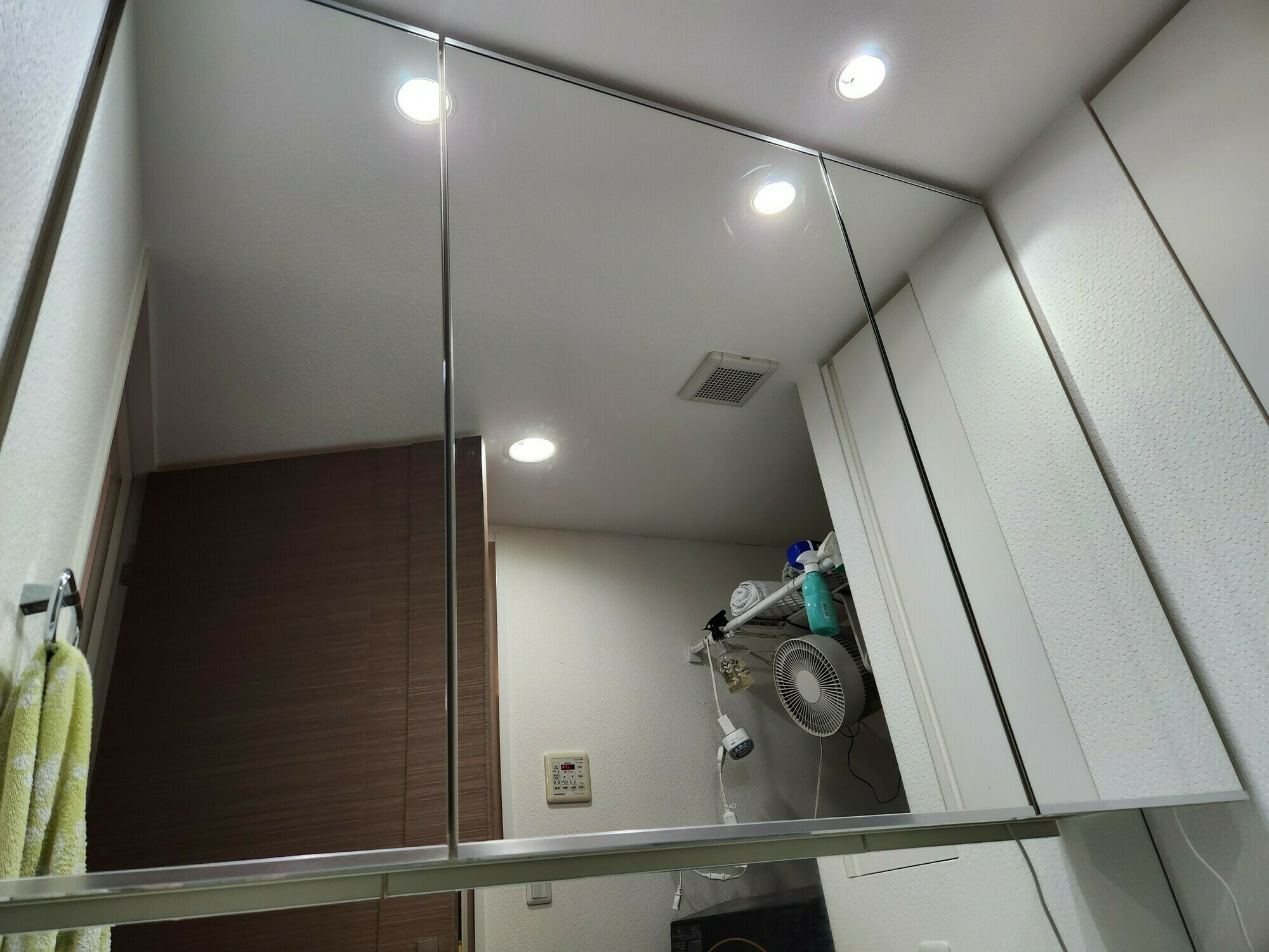 水滴汚れやウロコ汚れもなく、綺麗な鏡ですよね~!