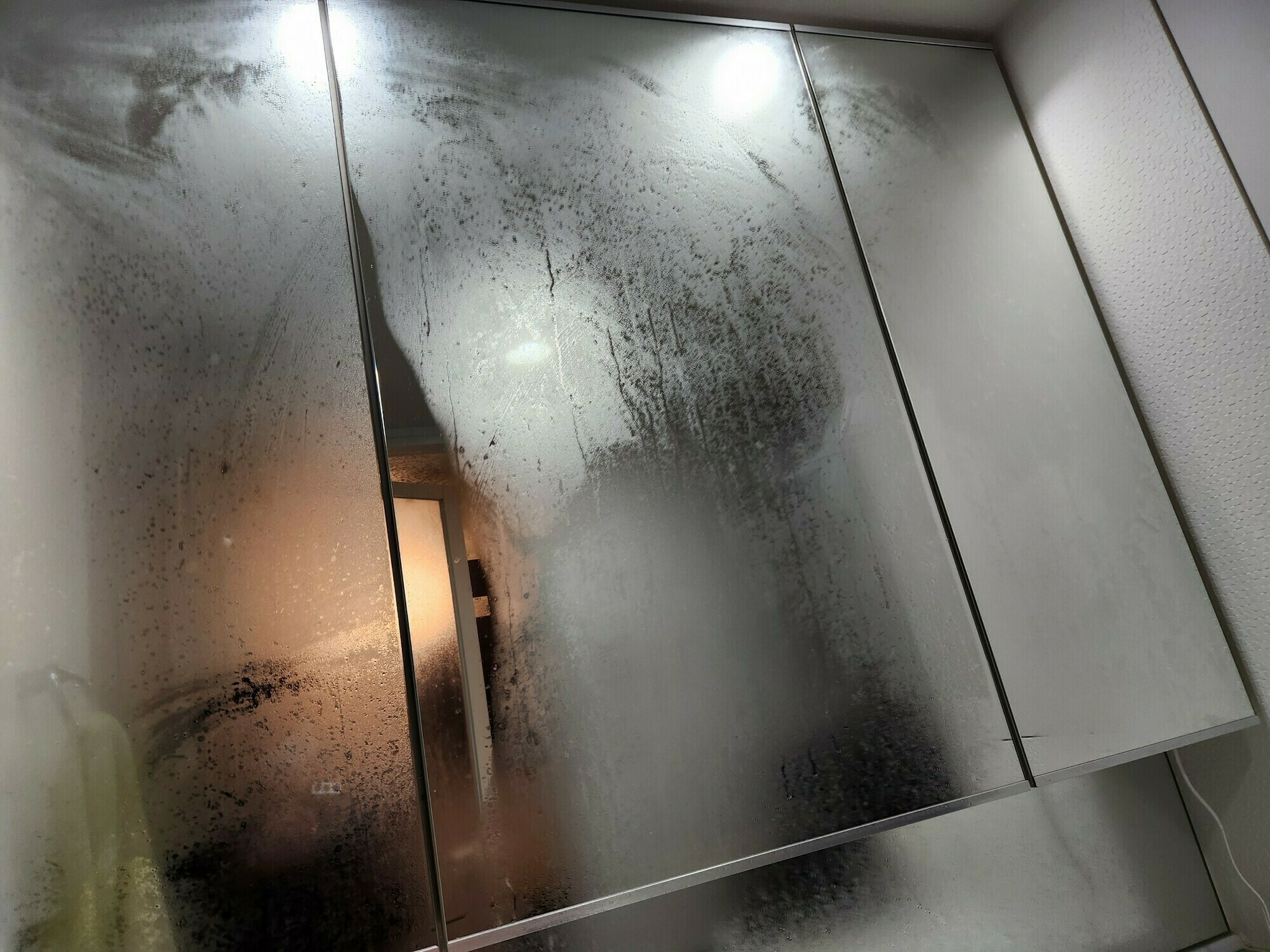 蛇口と同様、鏡も結露してしまっています💦果たして洗面所が綺麗になるのでしょうか?