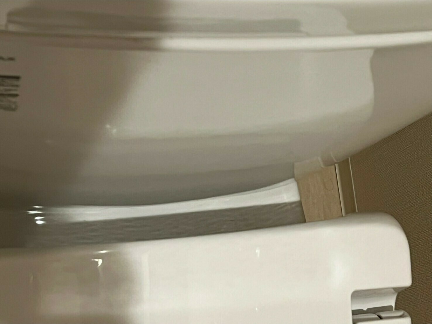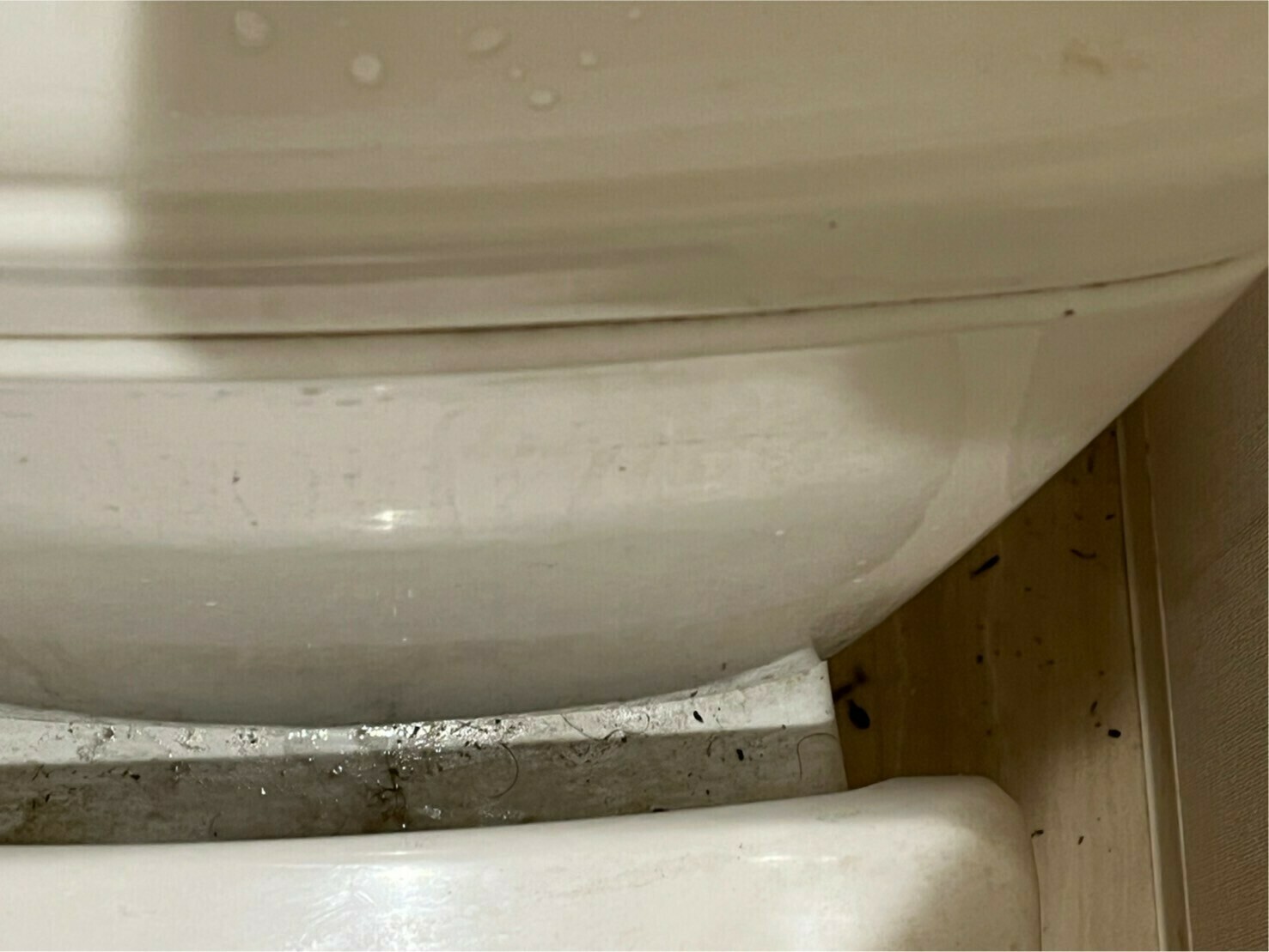 便座のとタンクの隙間には、水や埃汚れ等が溜まっていますね💦
