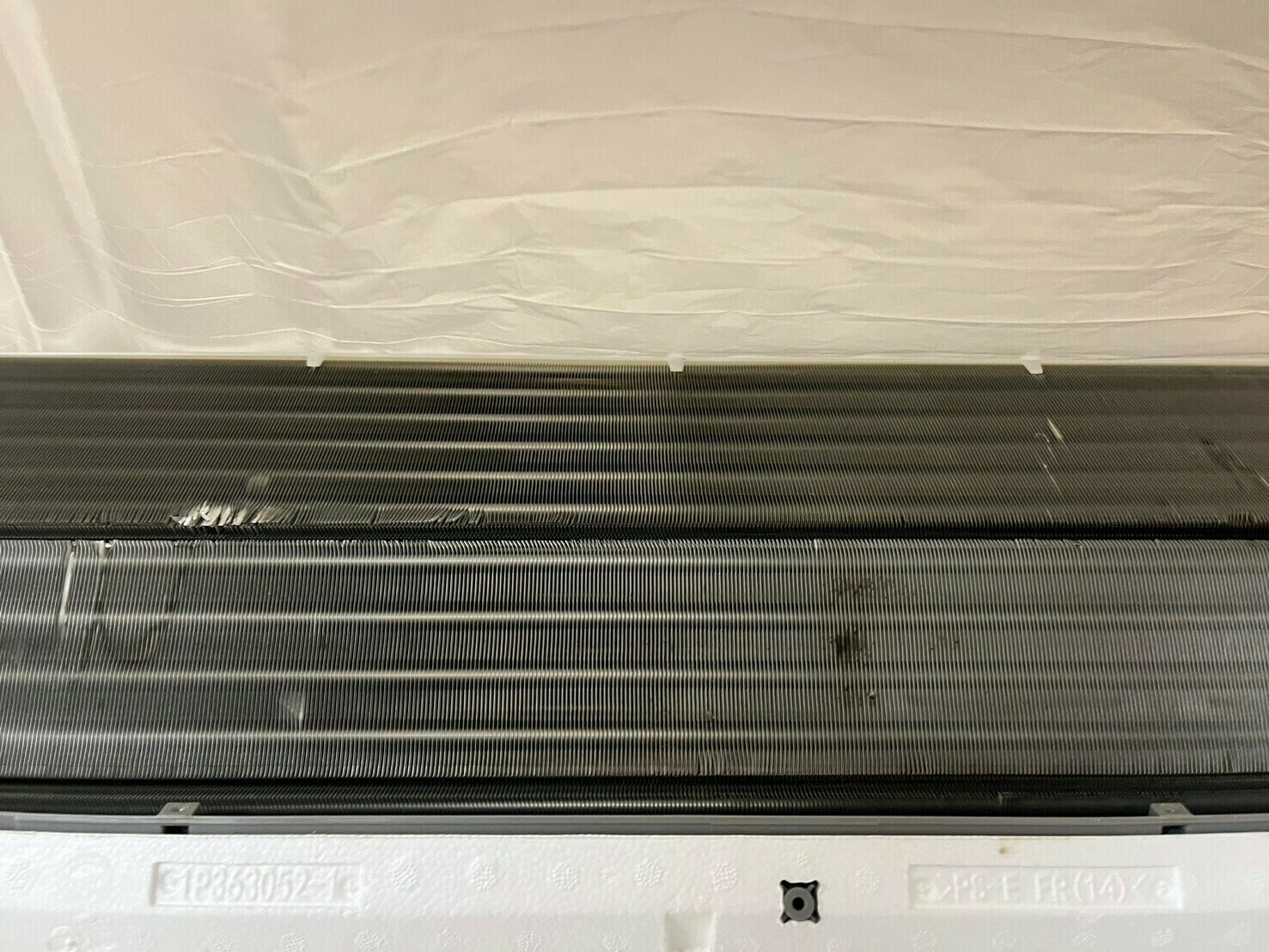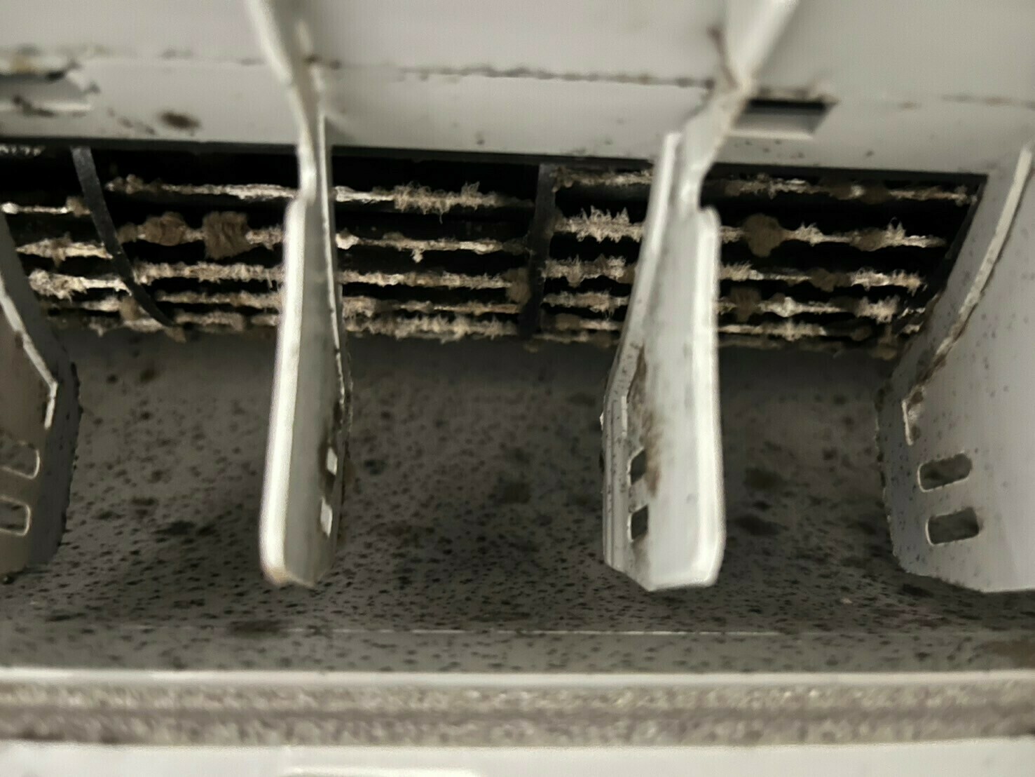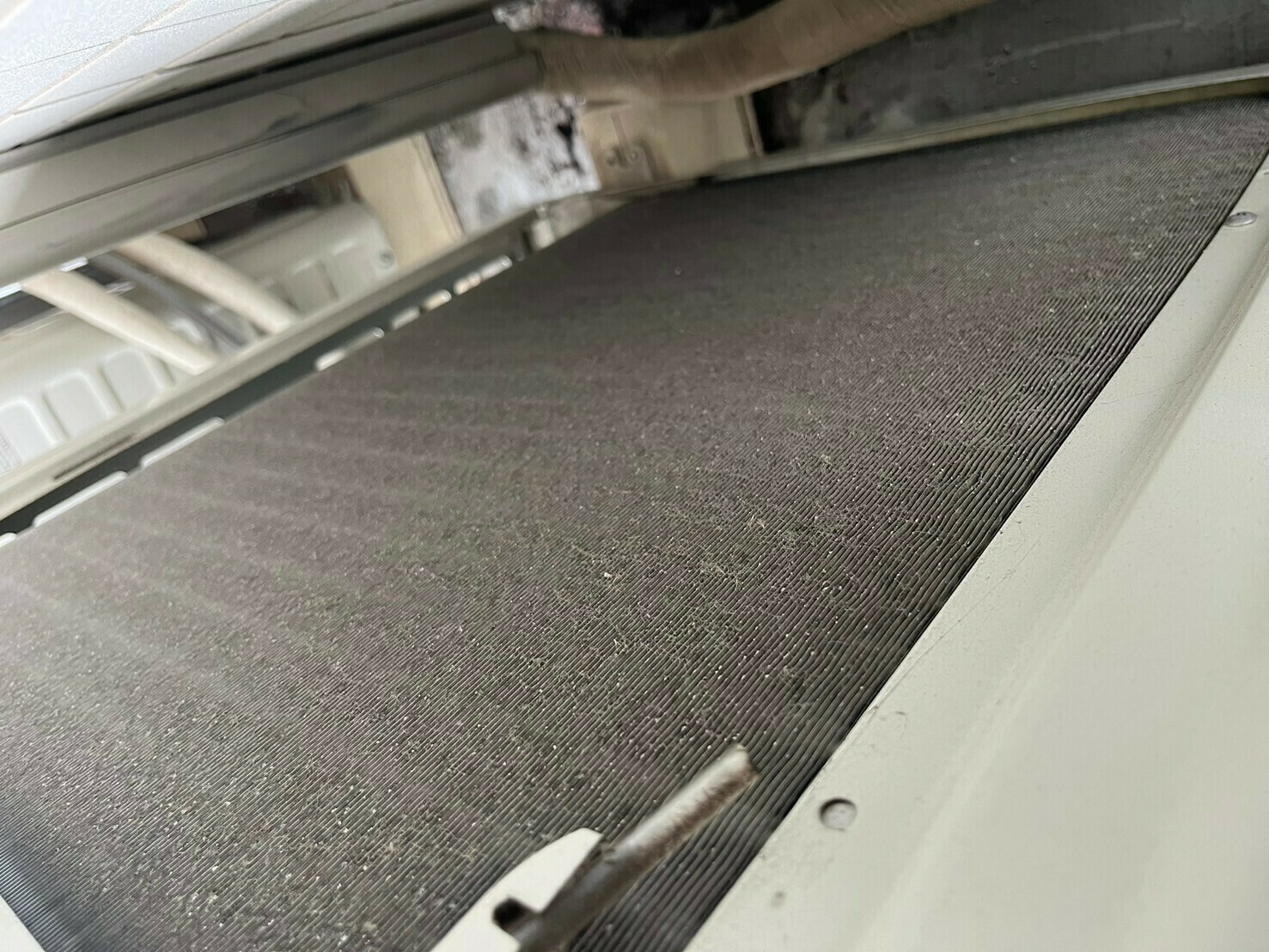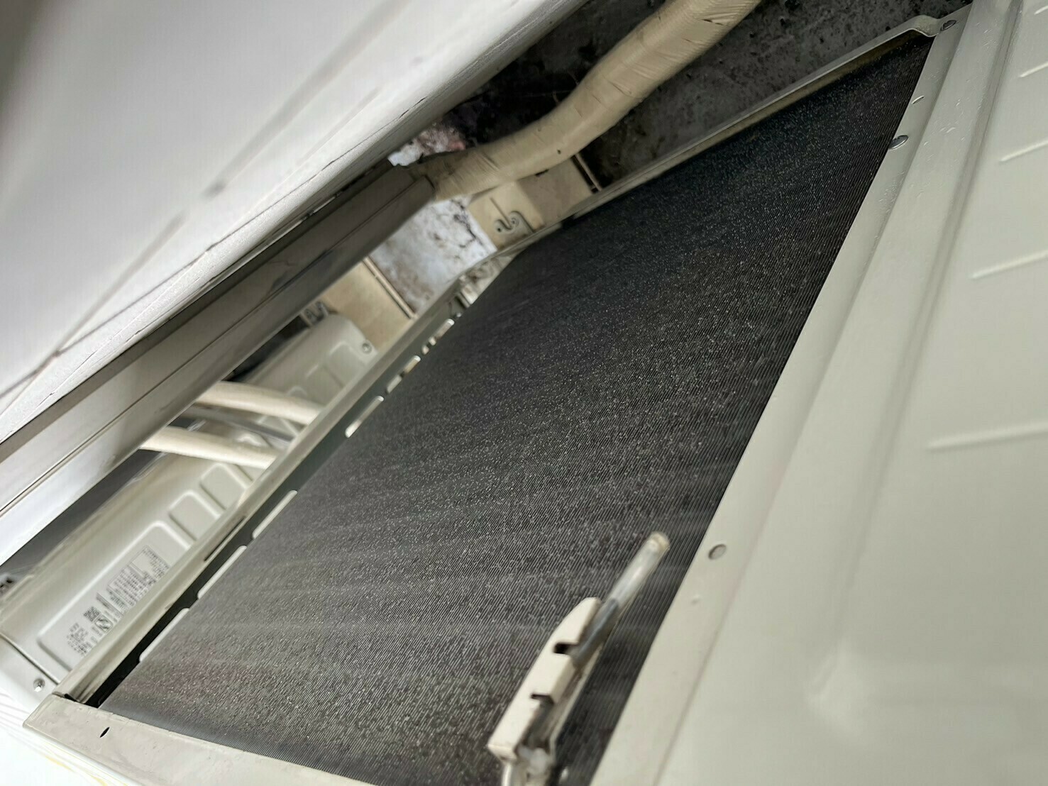 アルミフィンの真ん中あたりには、目立つ黒カビ汚れがついていますね💦