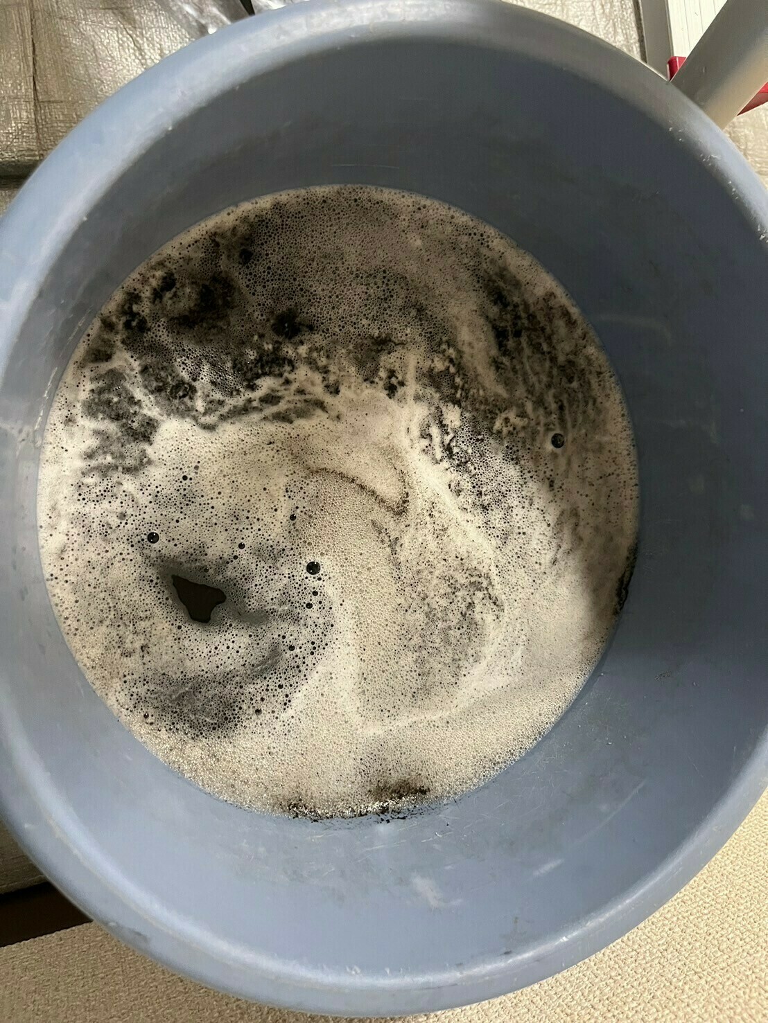 真っ白で見えにくいですが、泡の下には黒カビ汚れが入った真っ黒の汚水です💦