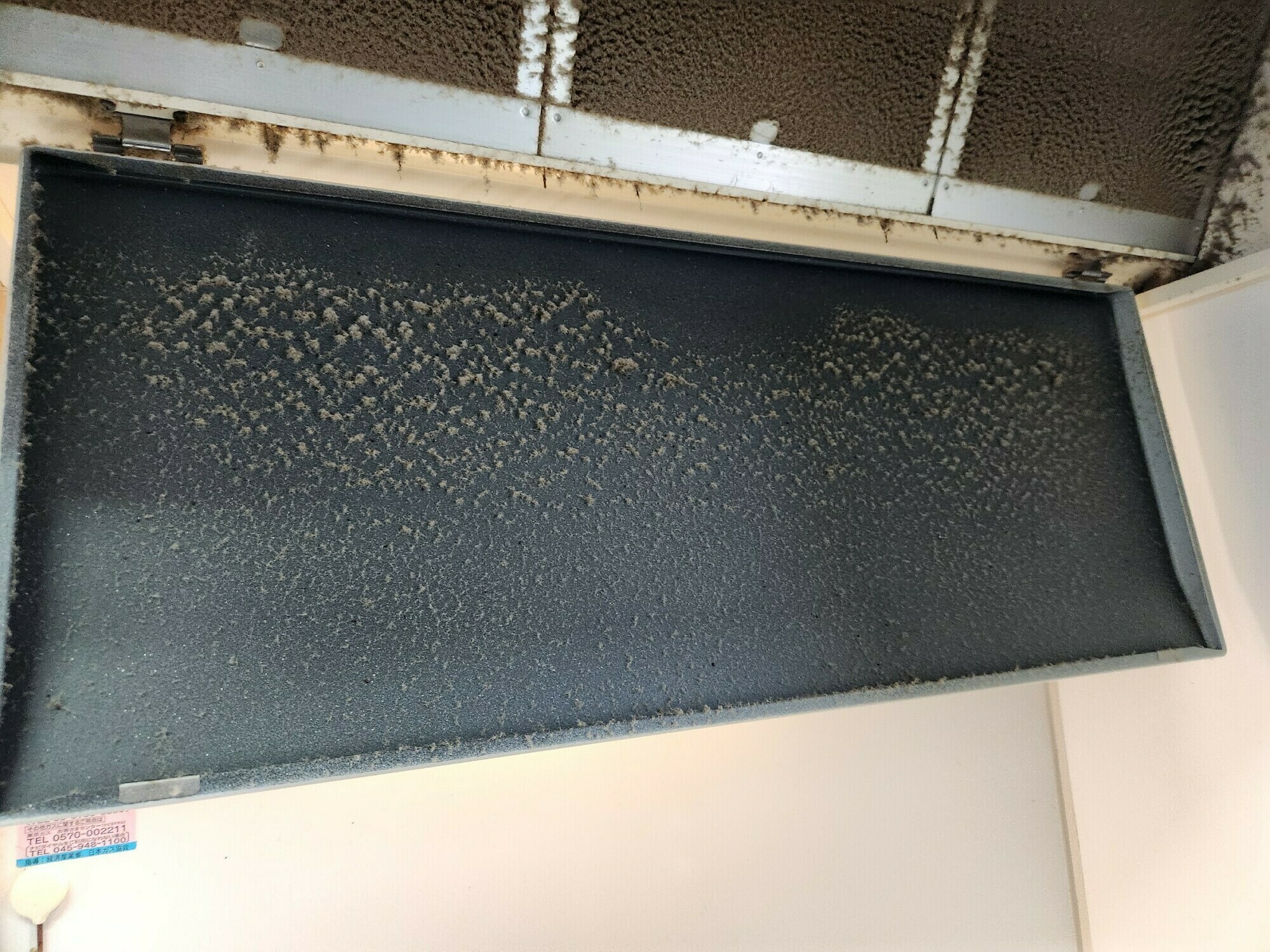 サムネイル画像にもありましたが、整流板をはずして出てきたフィルターは整流板以上に埃と油汚れを吸っています😱