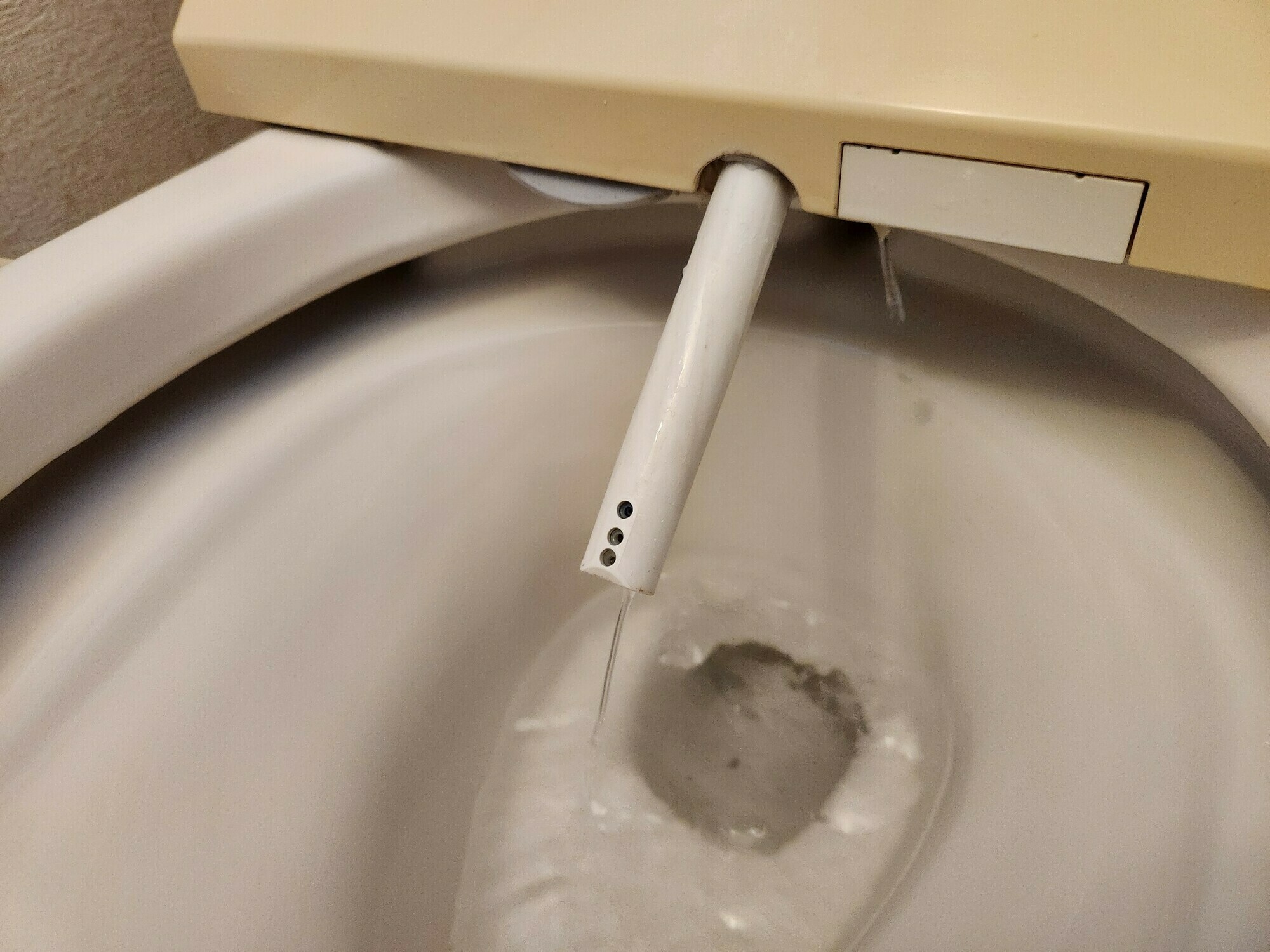 ウォシュレットのノズルは、サイドや先端に黒カビ汚れがついています💦