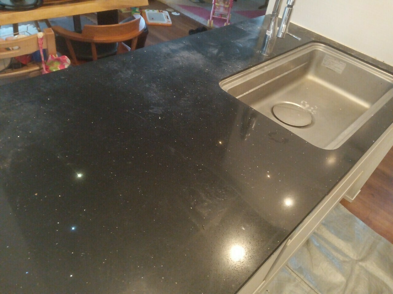 キッチンのシンクはくすみや水垢汚れがついますね💦