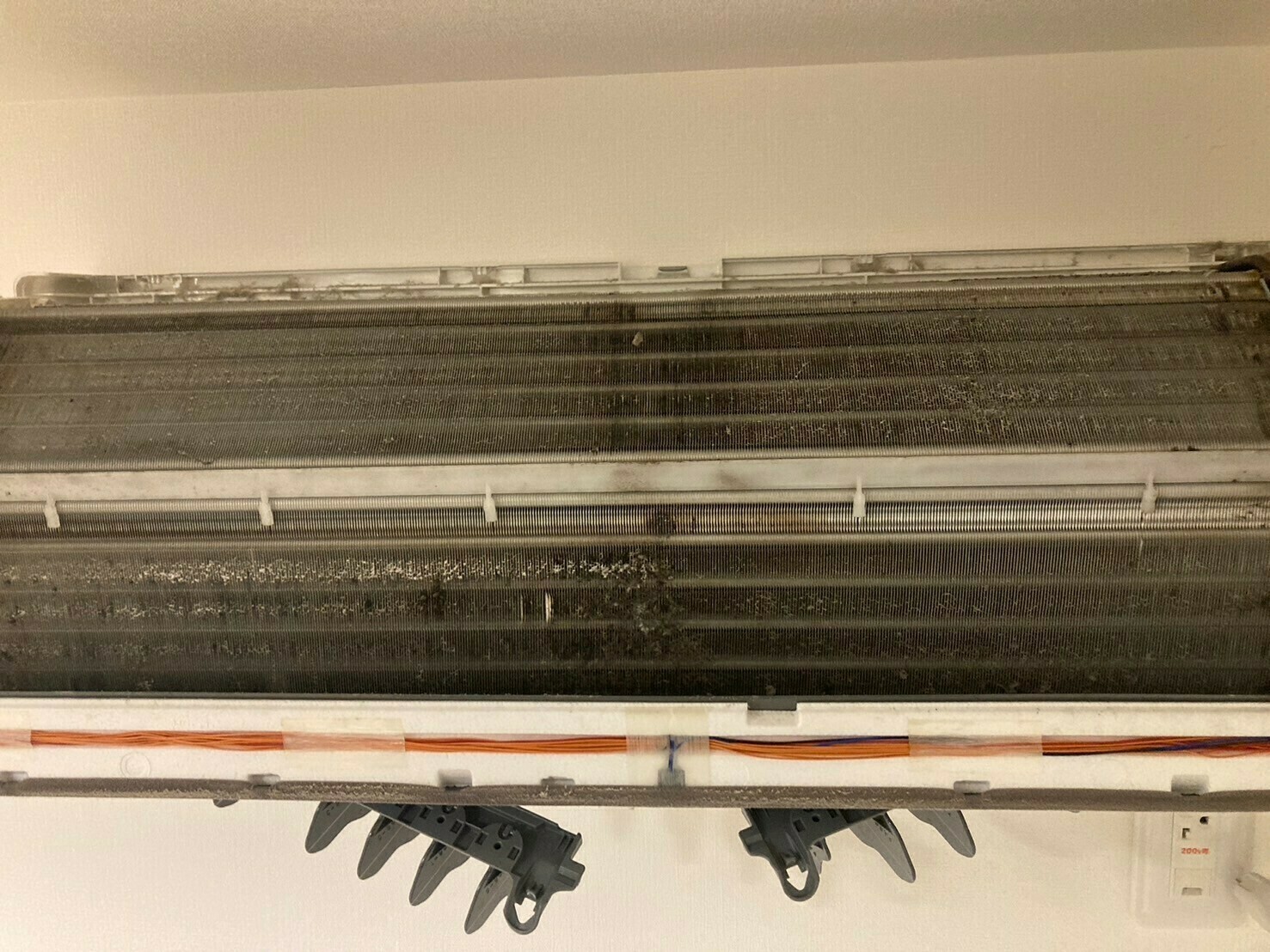 送風口にはうっすらした黒カビ汚れがついています😱