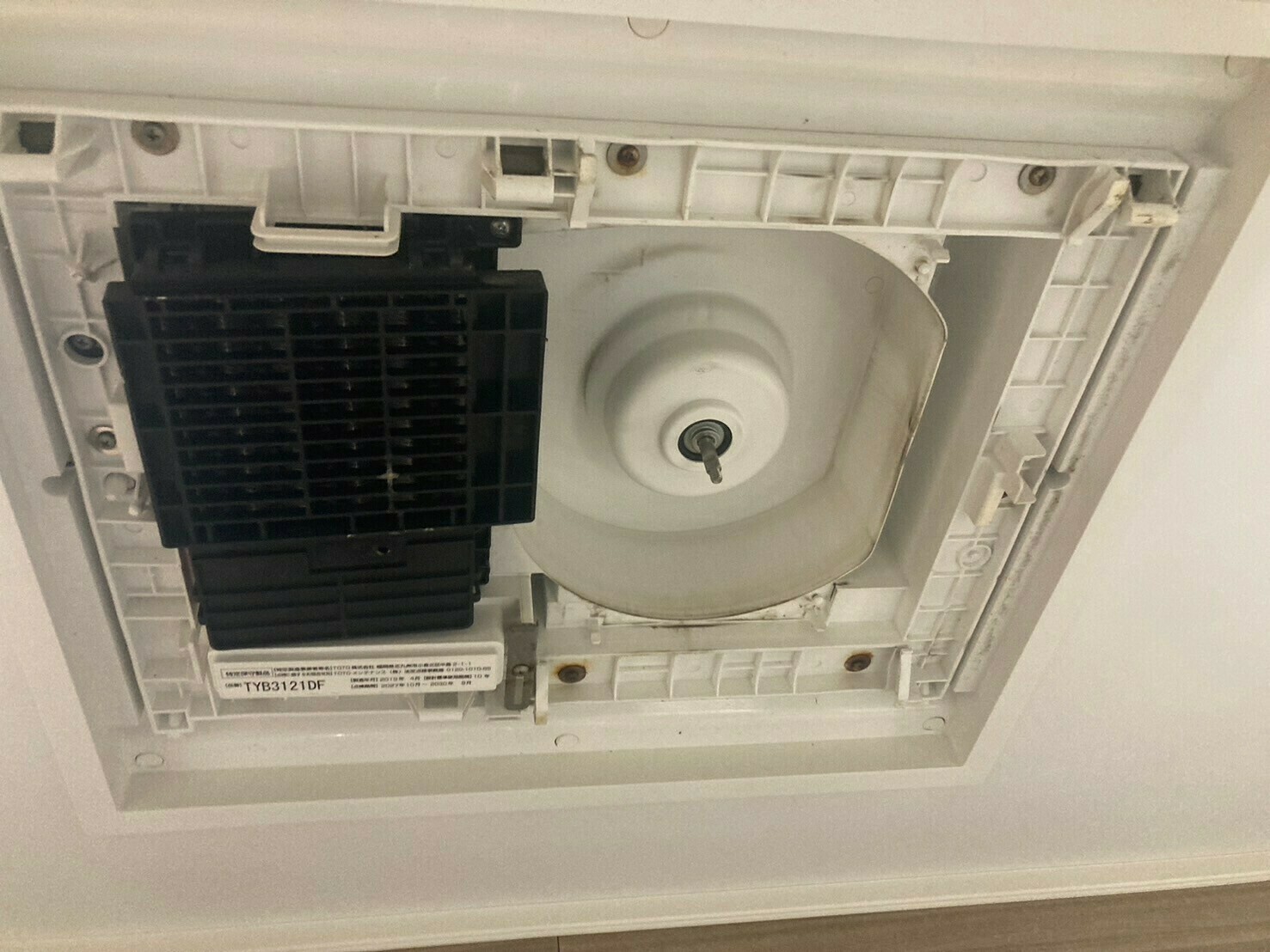 浴室乾燥機付き換気扇のファンには、黒カビ汚れがついています💦