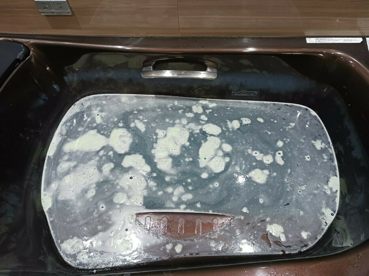 少し時間をおき、バスタブ内の汚水の変化があまり見られなくなり、汚れが完全に湧き出てこなくなったのを確認してから、バスタブ内に溜まった汚れとさよならします。