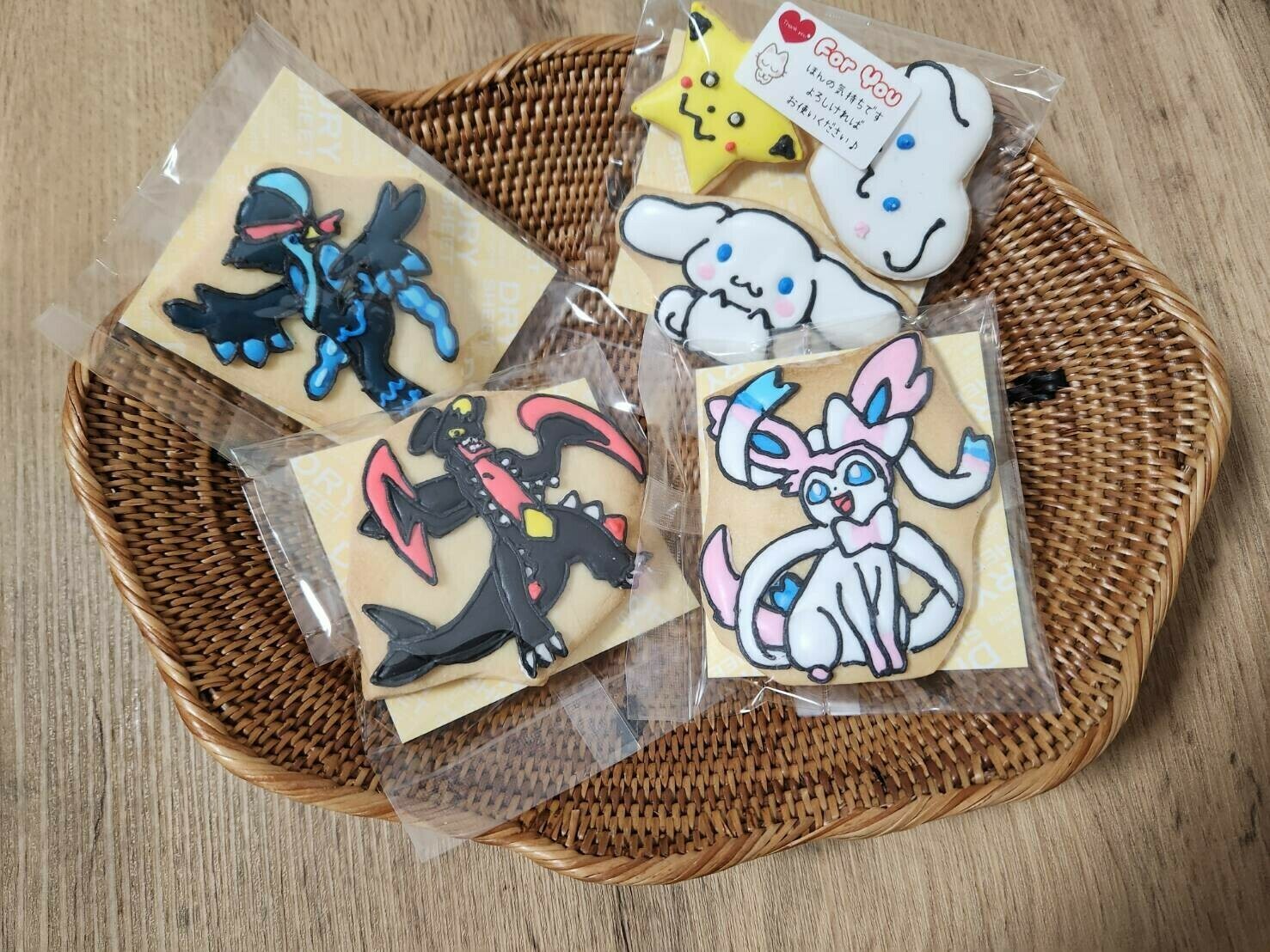 息子のクッキーは、ポケモンのウェーニバル(左上)・メガガブリアス(左下)、娘はシナモロール(右上)・ポケモンのニンフィア(右下)です☆