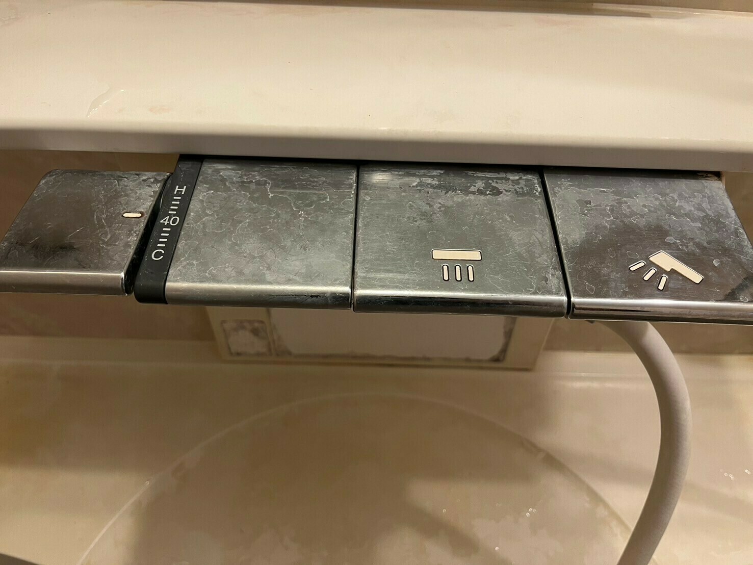 タッチパネルには皮脂汚れで黒ずんでいたり、コーキング部分には黒カビ汚れがついています💦