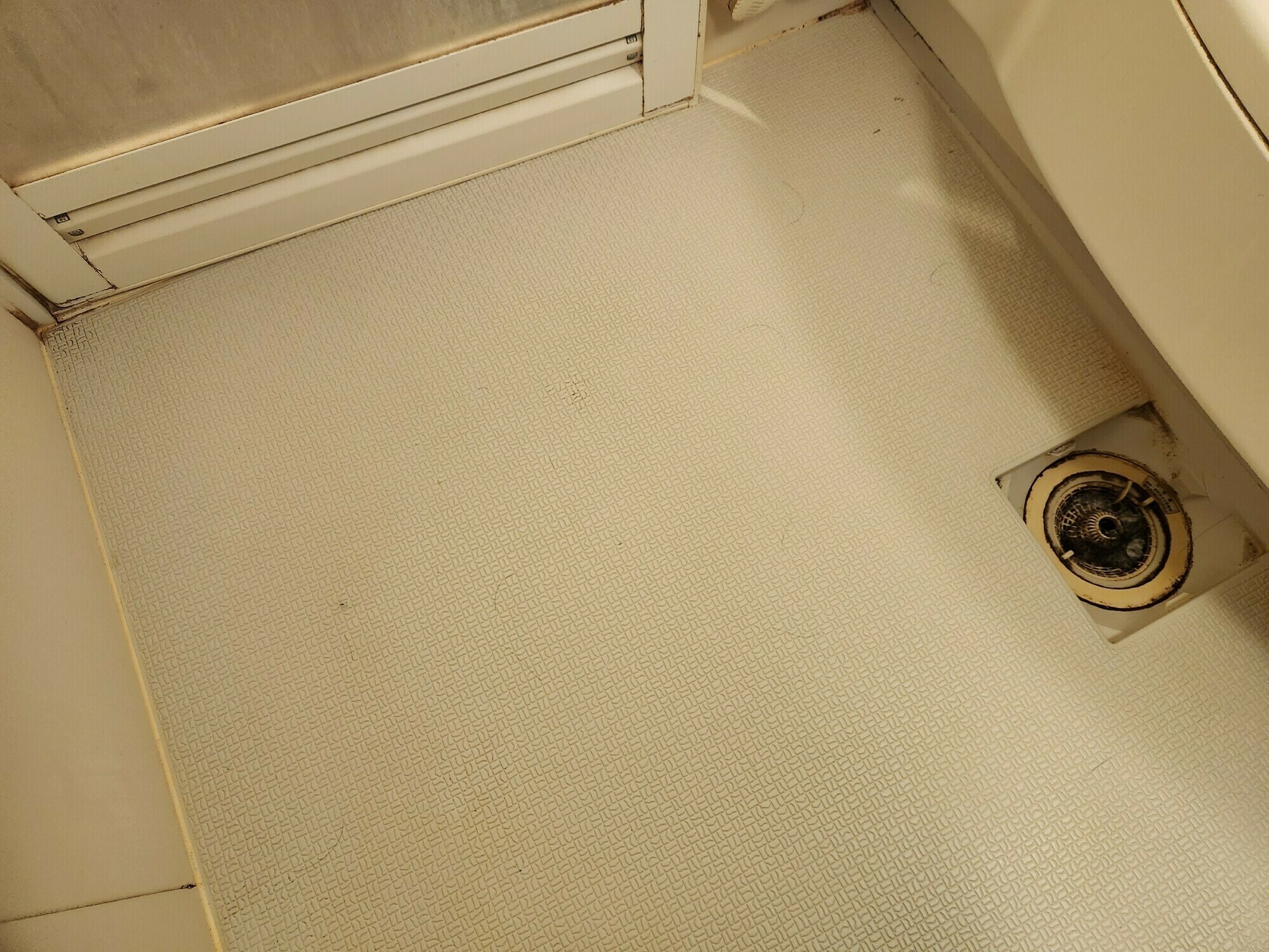 床のゴムパッキンや排水口には黒カビ汚れが目立っていますね😱