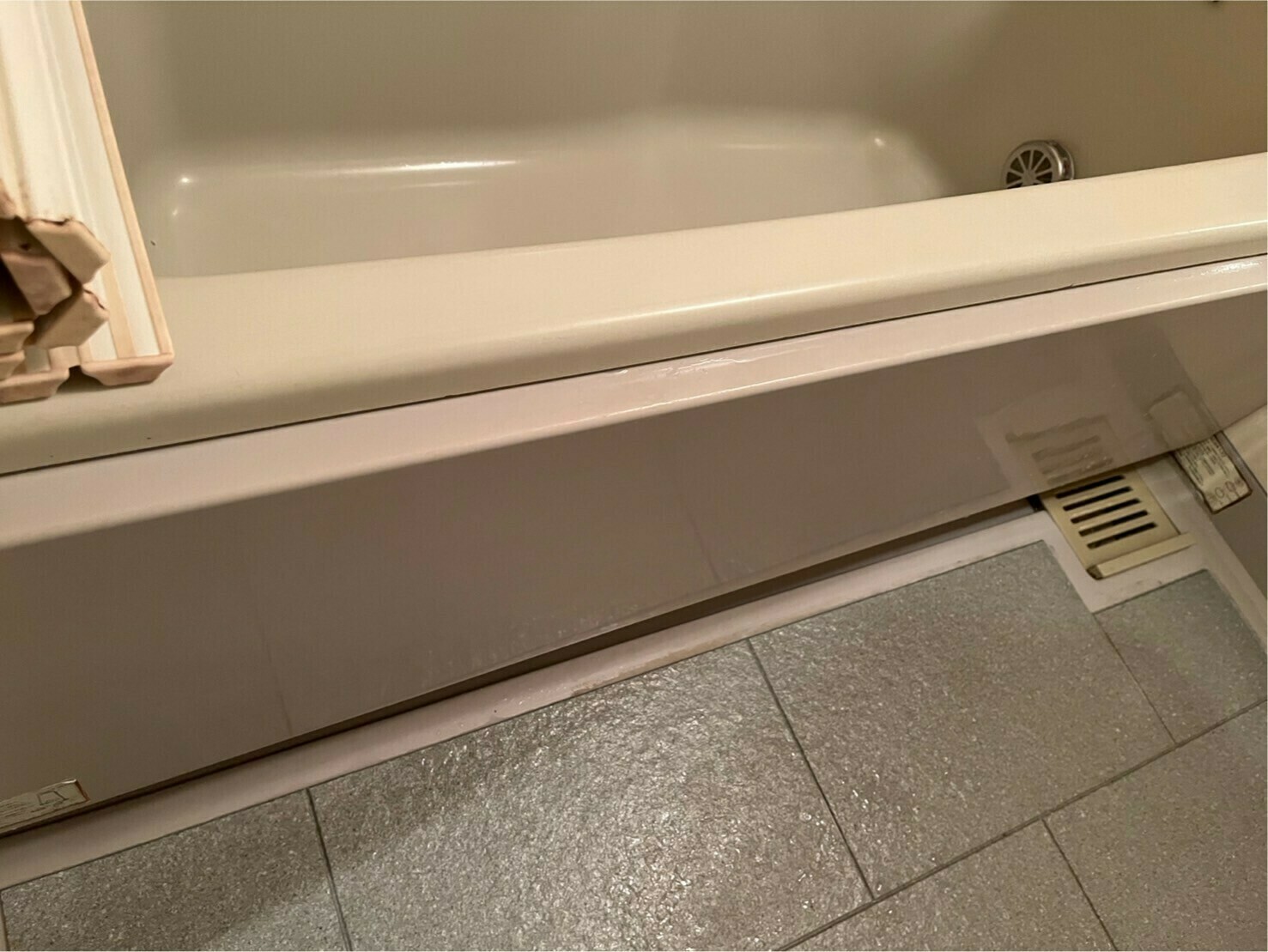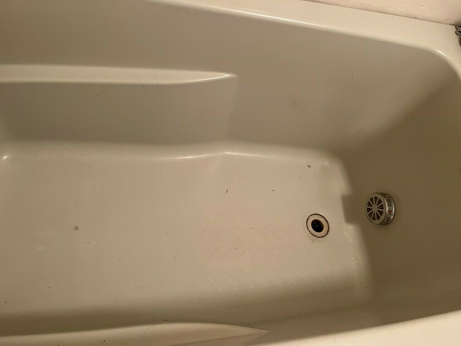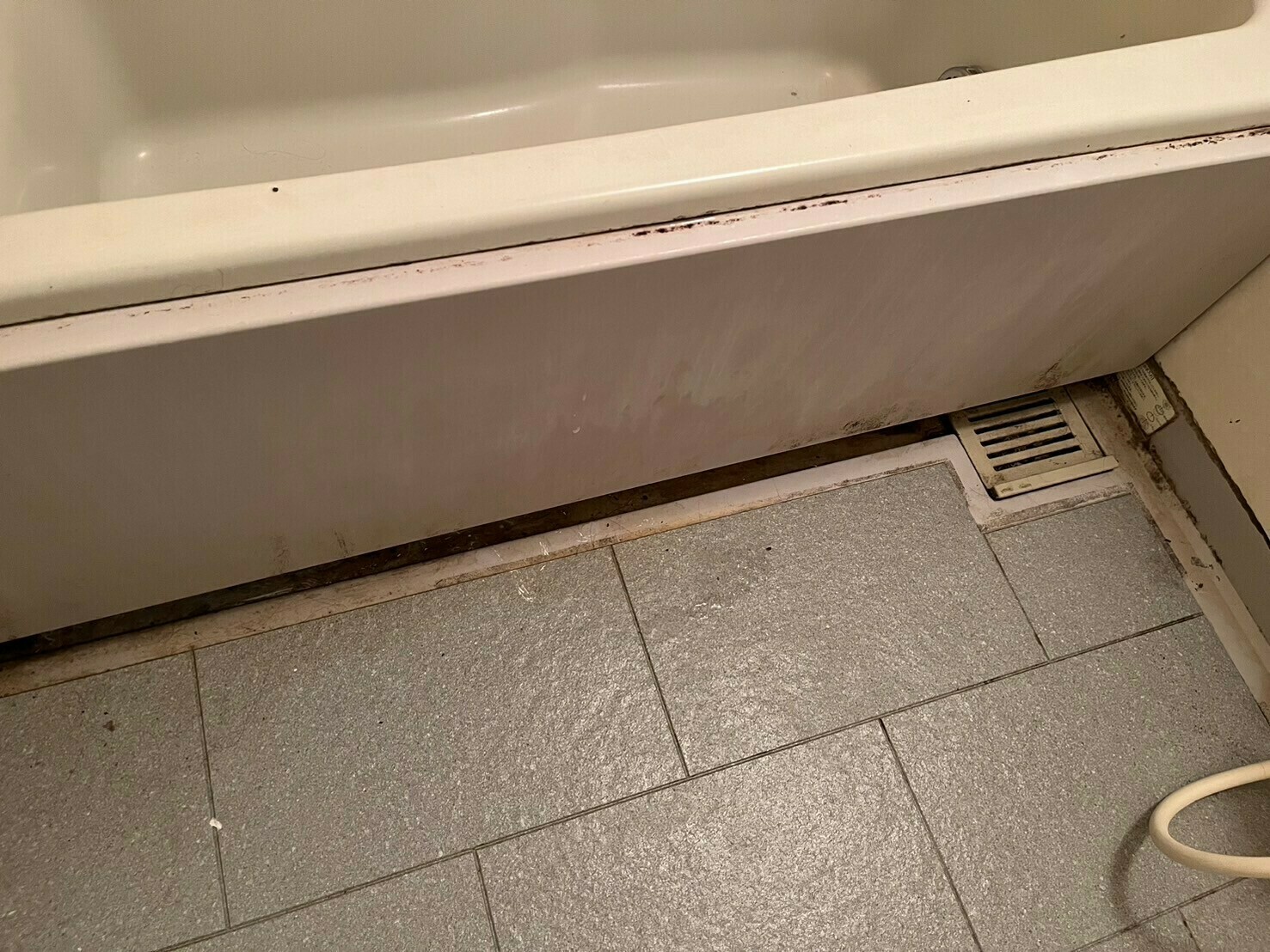 浴槽には黒カビ汚れ以外に、黒い斑点の汚れや髪の毛が落ちています💦