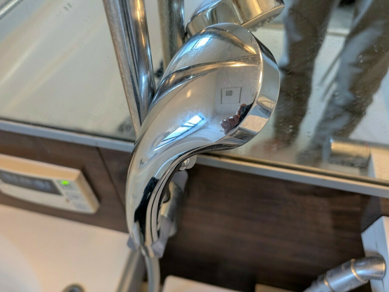 蛇口周りにあったウロコ汚れはなくなり、白くなっていた蛇口周りはステンレスの輝きを放つようになりました😆