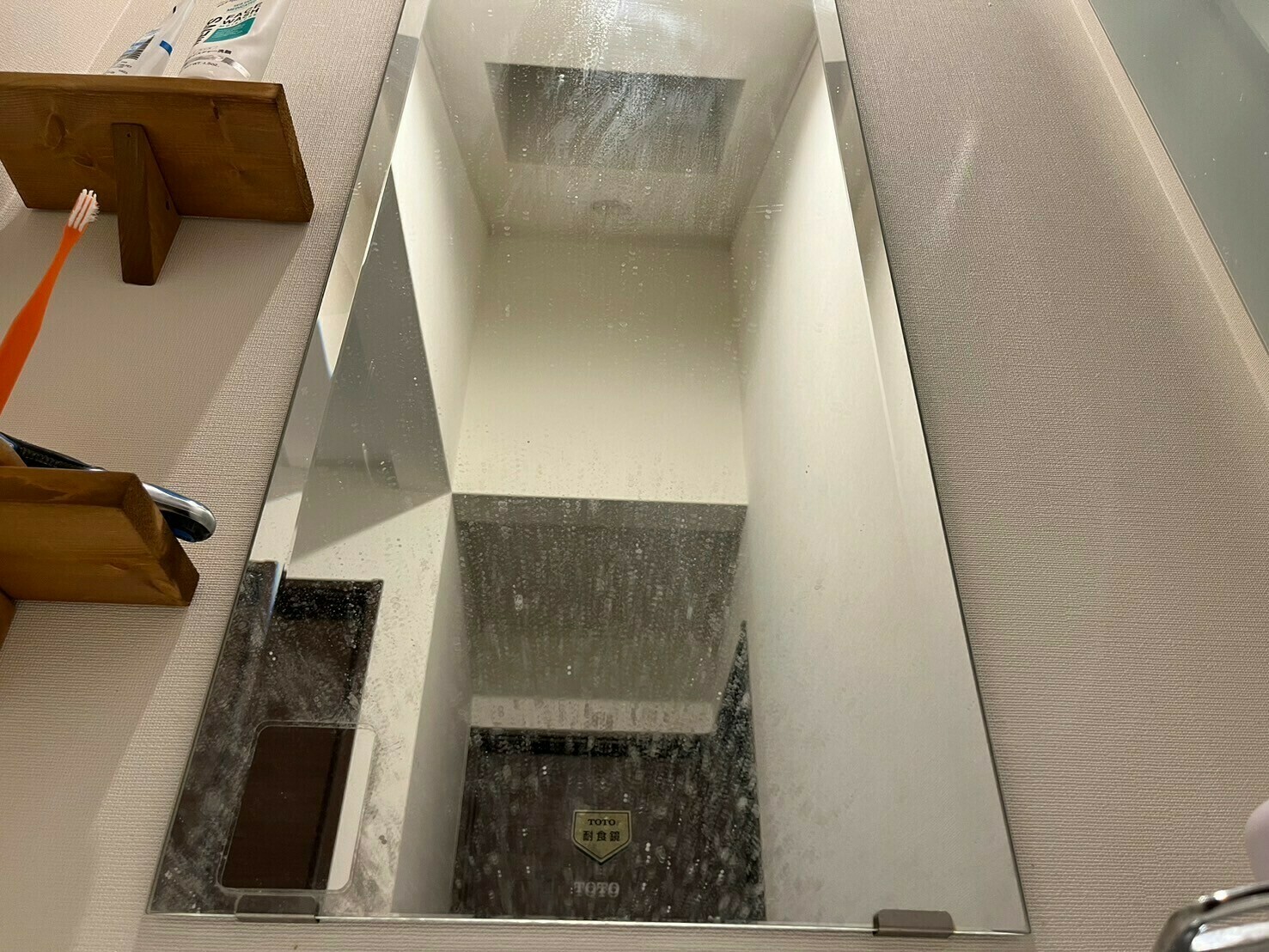 鏡には水滴汚れがつき、汚れが目立っています💦
