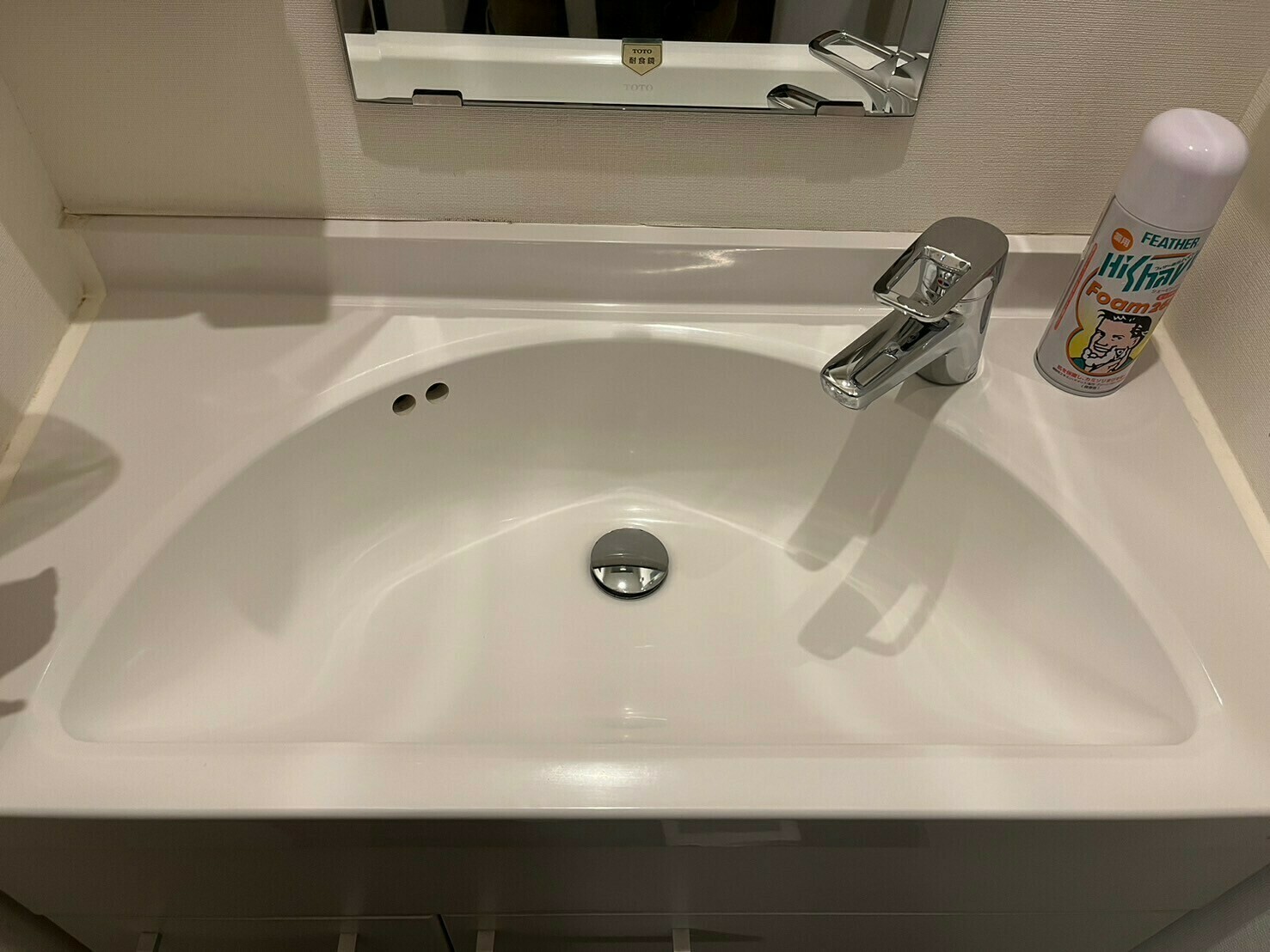 エアコンクリーニングと共にお申し込みいただきました水周りクリーニングのうち、洗面所クリーニングの作業を報告いたします。