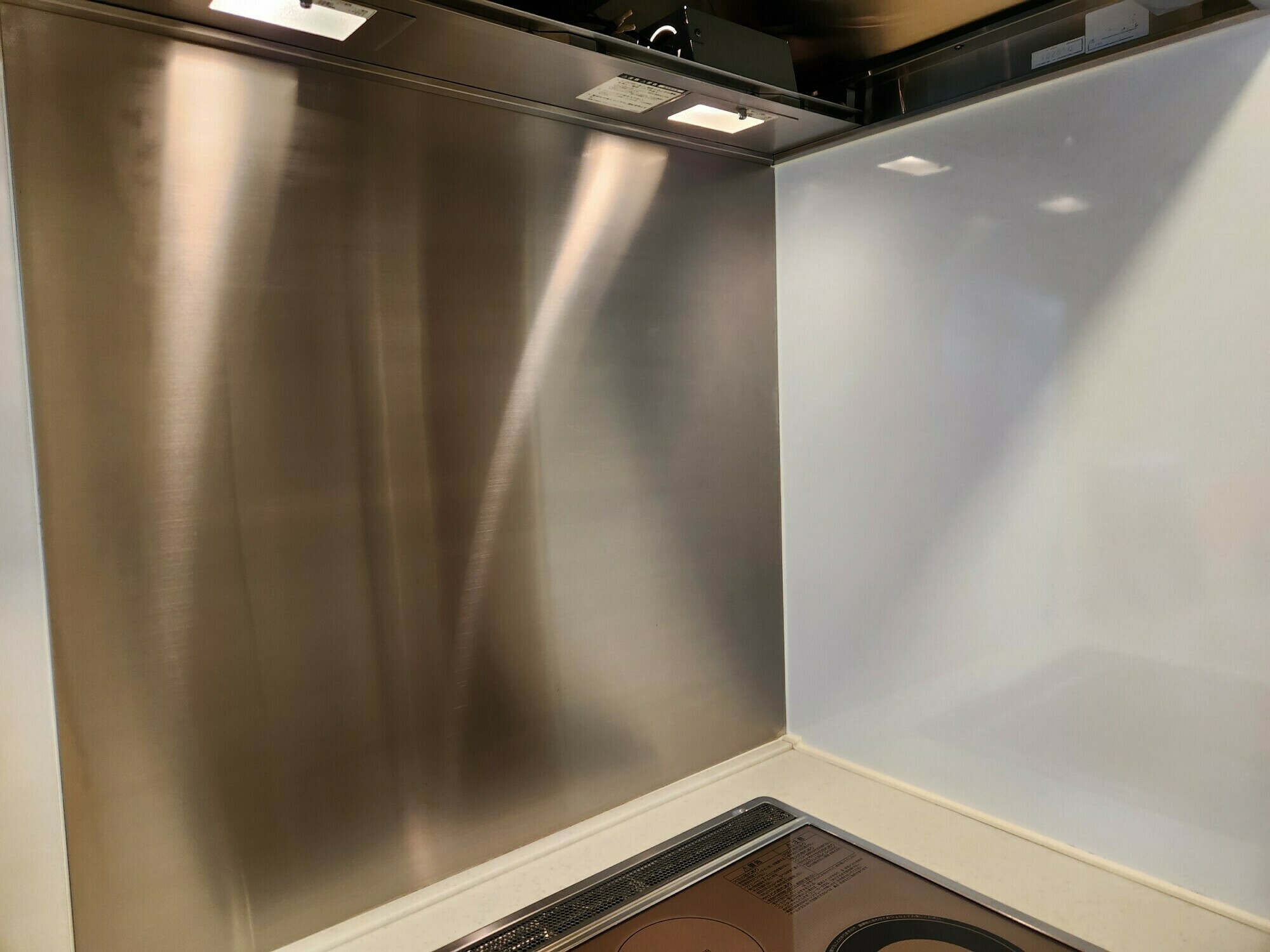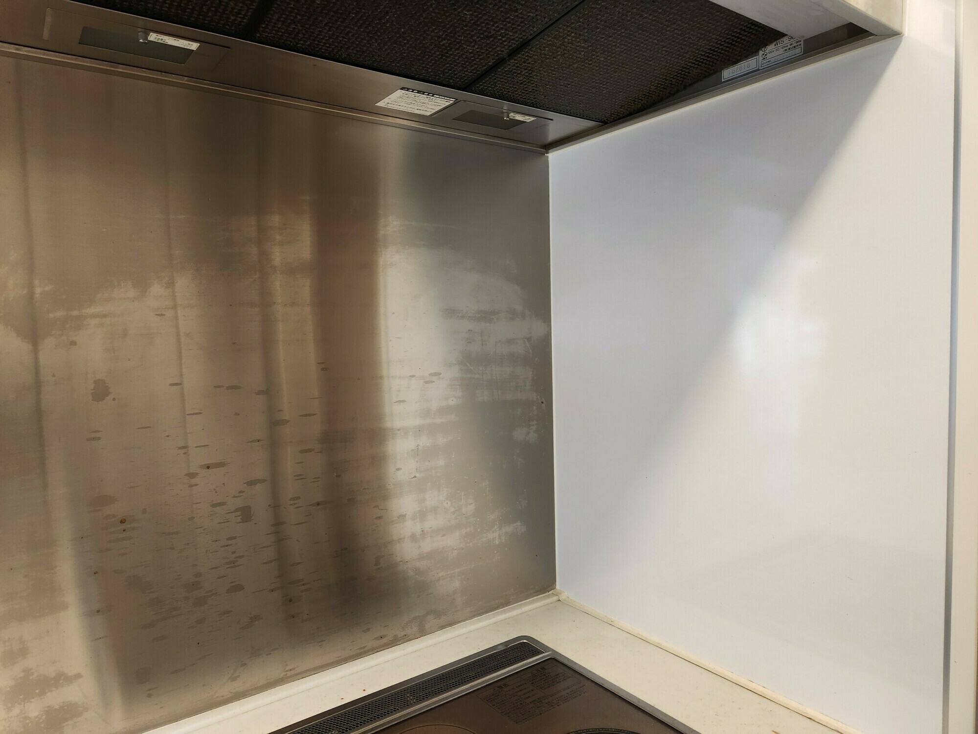 油跳ねが目立っていたコンロ奥の壁はすっきり綺麗になりました😀✨