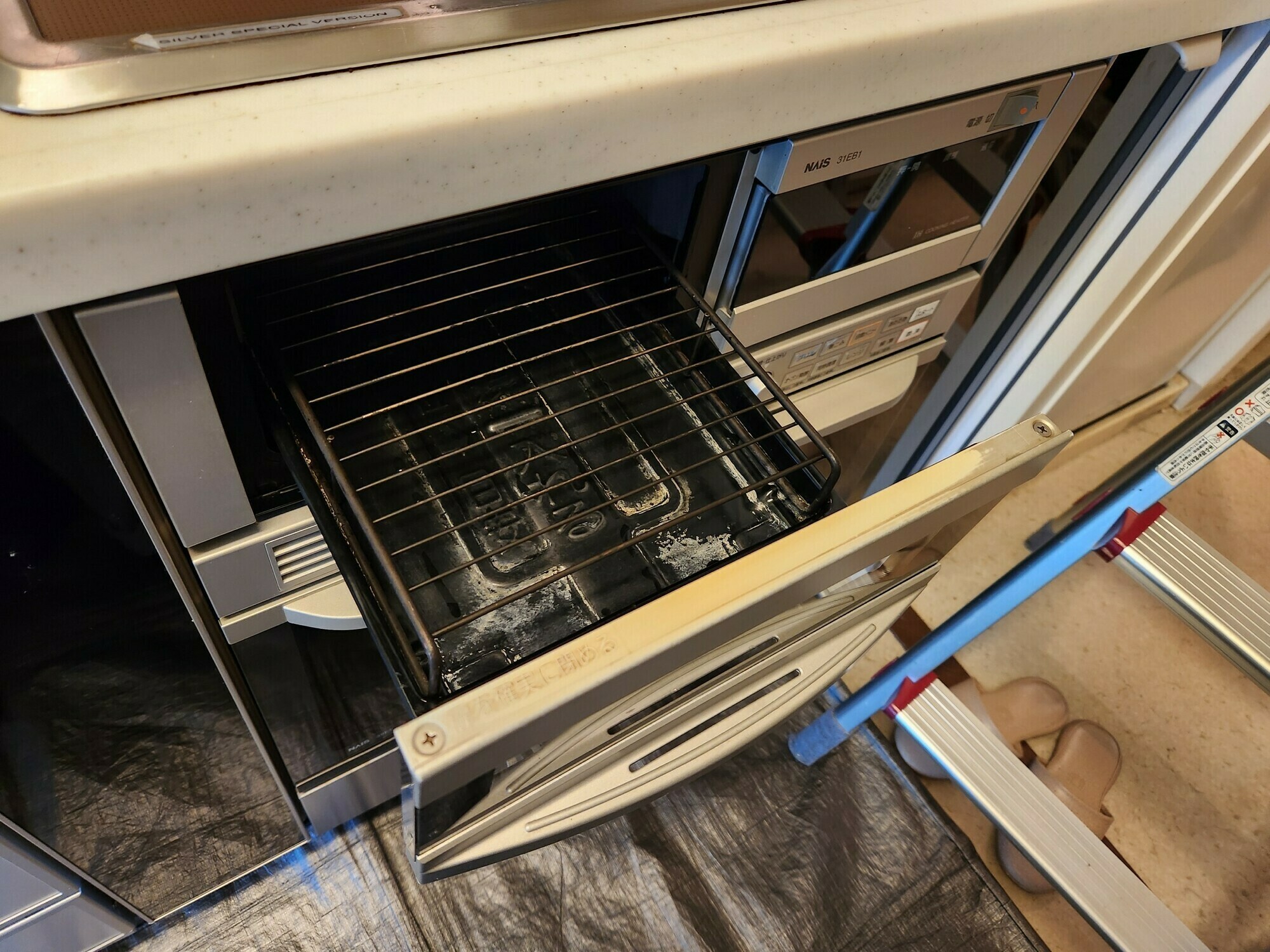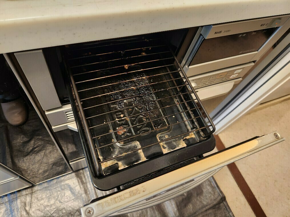 お魚焼きグリルの網は、魚の皮や油汚れがついています💦