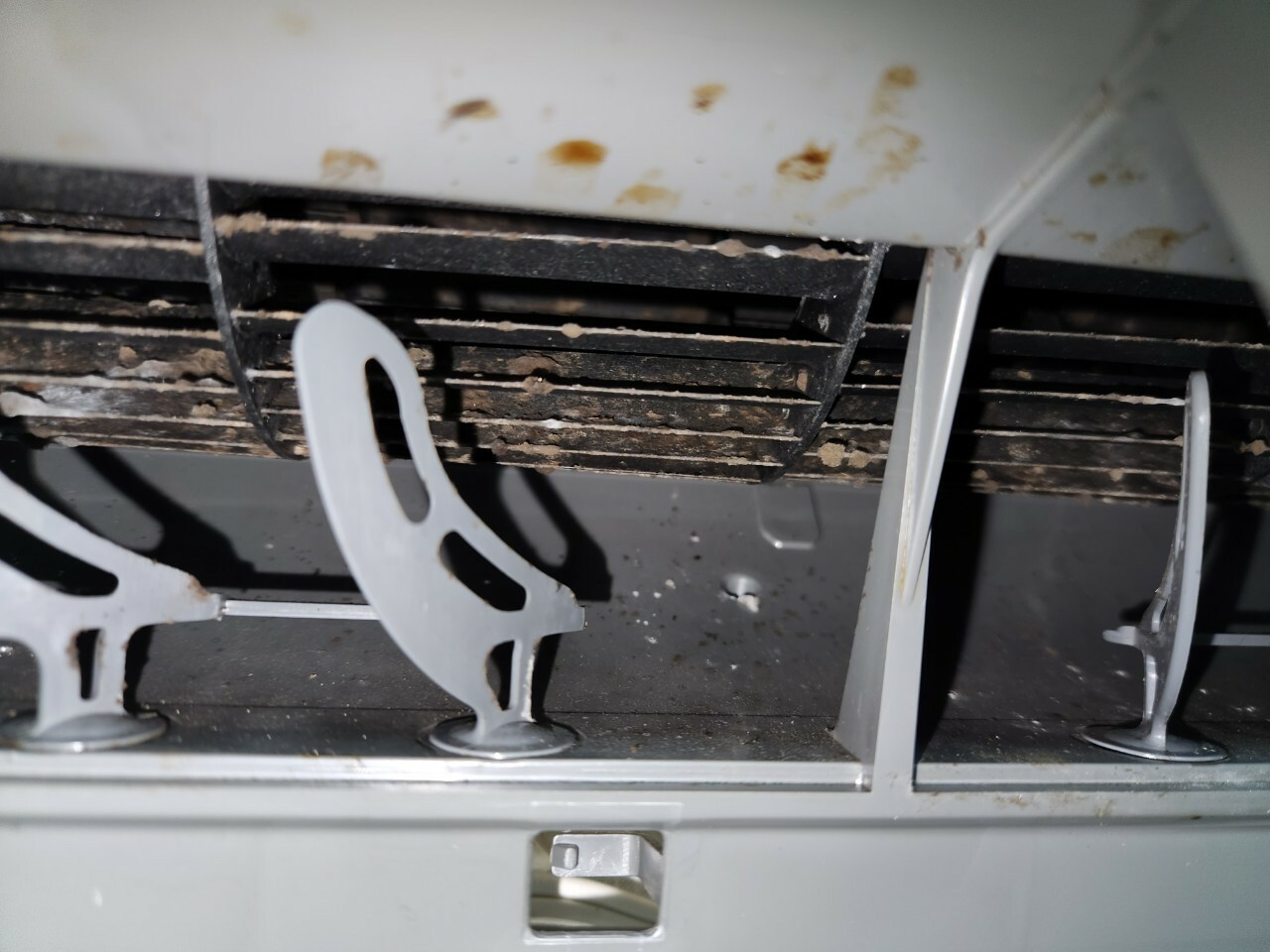 分解した部品を見てみると、カビをはじめとする汚れが溜まっていることが分かると思います。