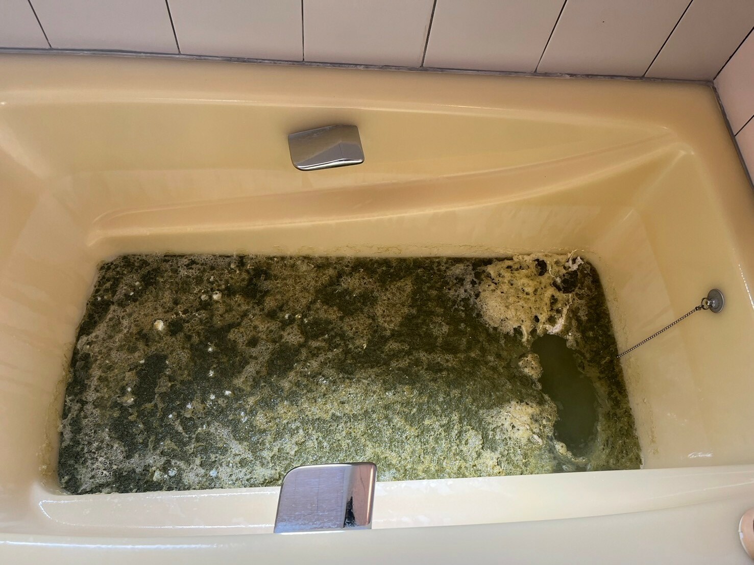 高圧洗浄でエアコン内部のクリーニングを行うため、エアコンのハウスクリーニングが終わった後は、このように汚れが溜まった水が排出されます。