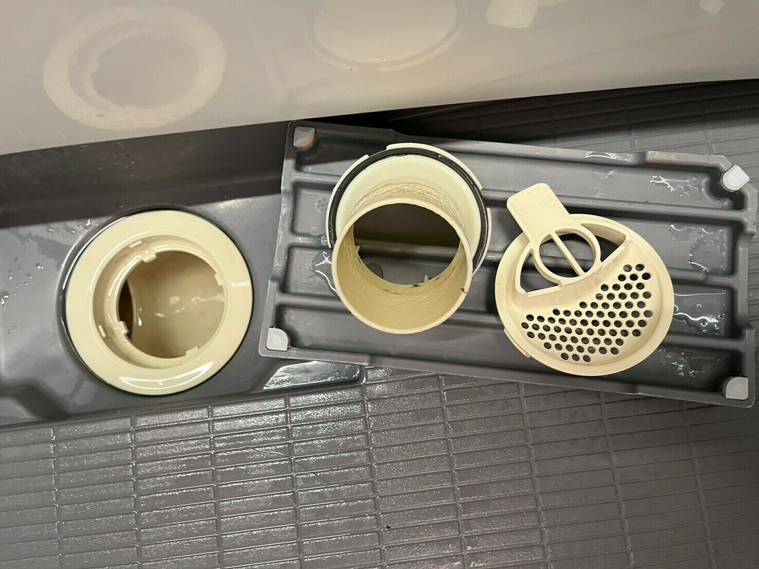 排水口はすごくお手入れが行き届いていて綺麗ですが、少し黒カビ汚れがついていますね💦