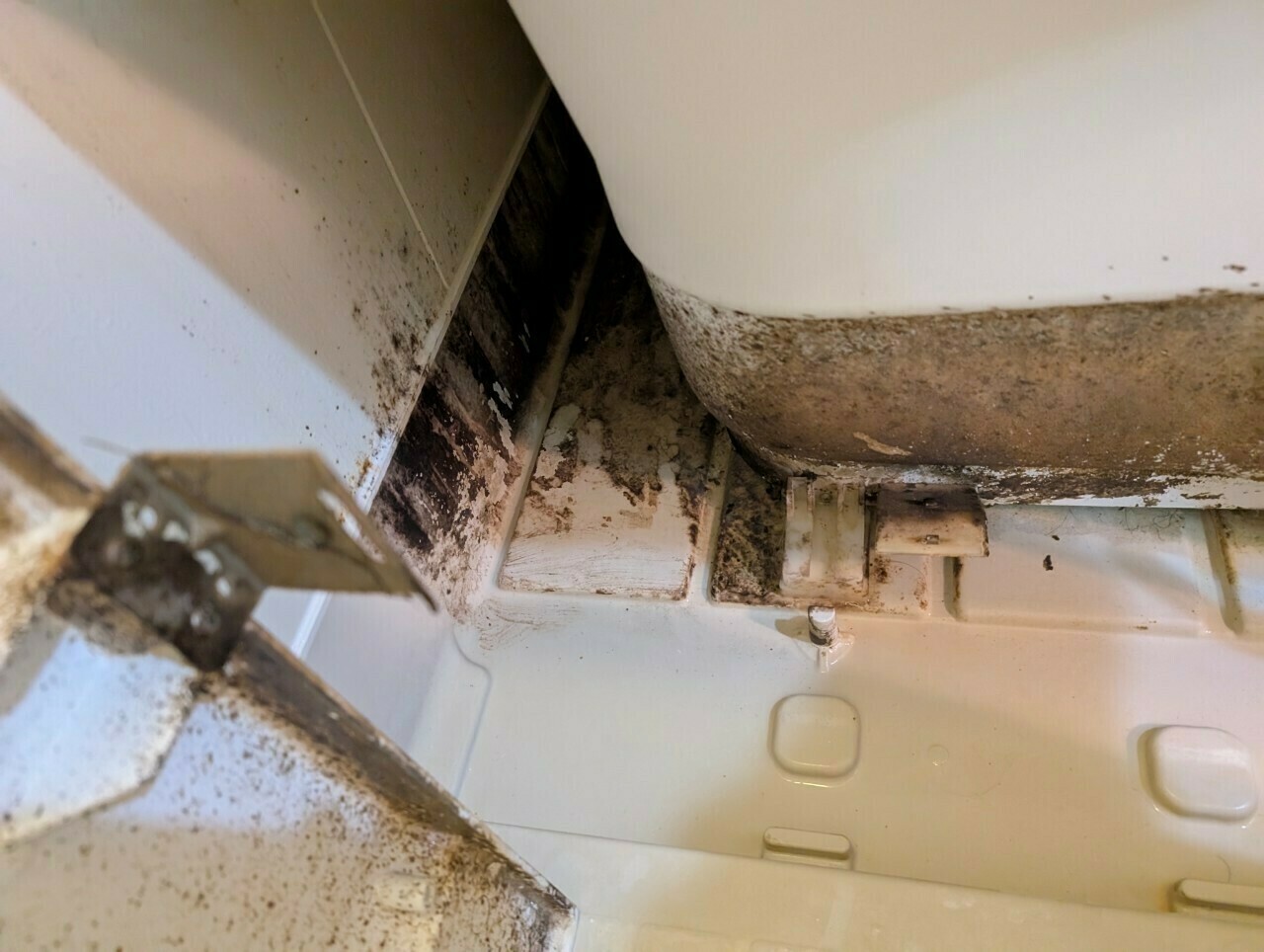 反対側同様、こちらも黒カビ汚れがびっしりついています💦