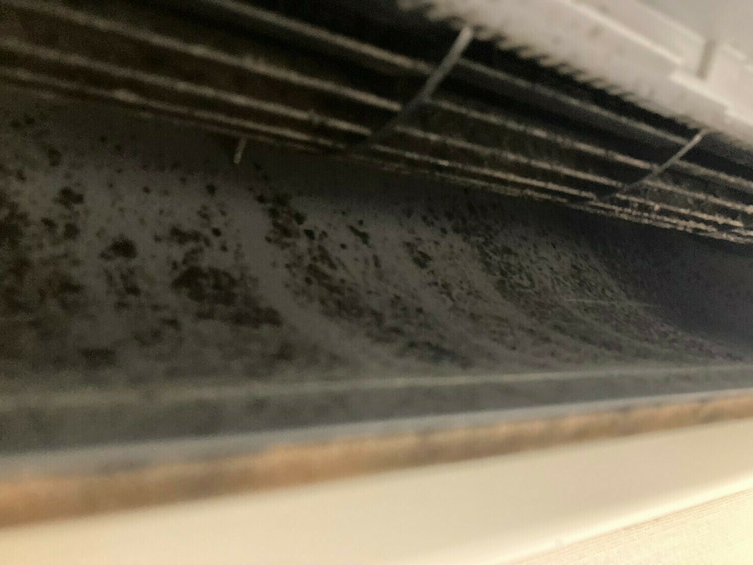 ・エアコン内を覗くと、黒カビ汚れが溜まっている事が確認できるエアコンをお持ちの方