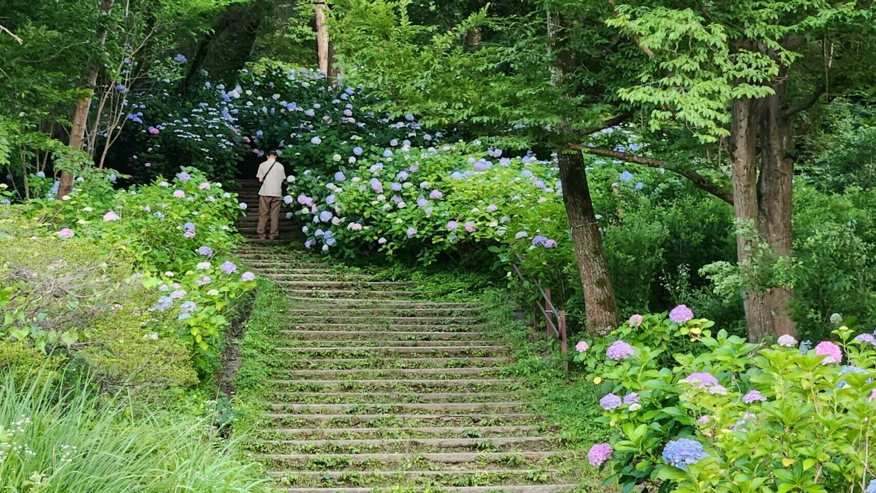 今の時期、紫陽花が綺麗で、お散歩に来られている方、お写真を撮りにこられている方が多くいらっしゃいました😊