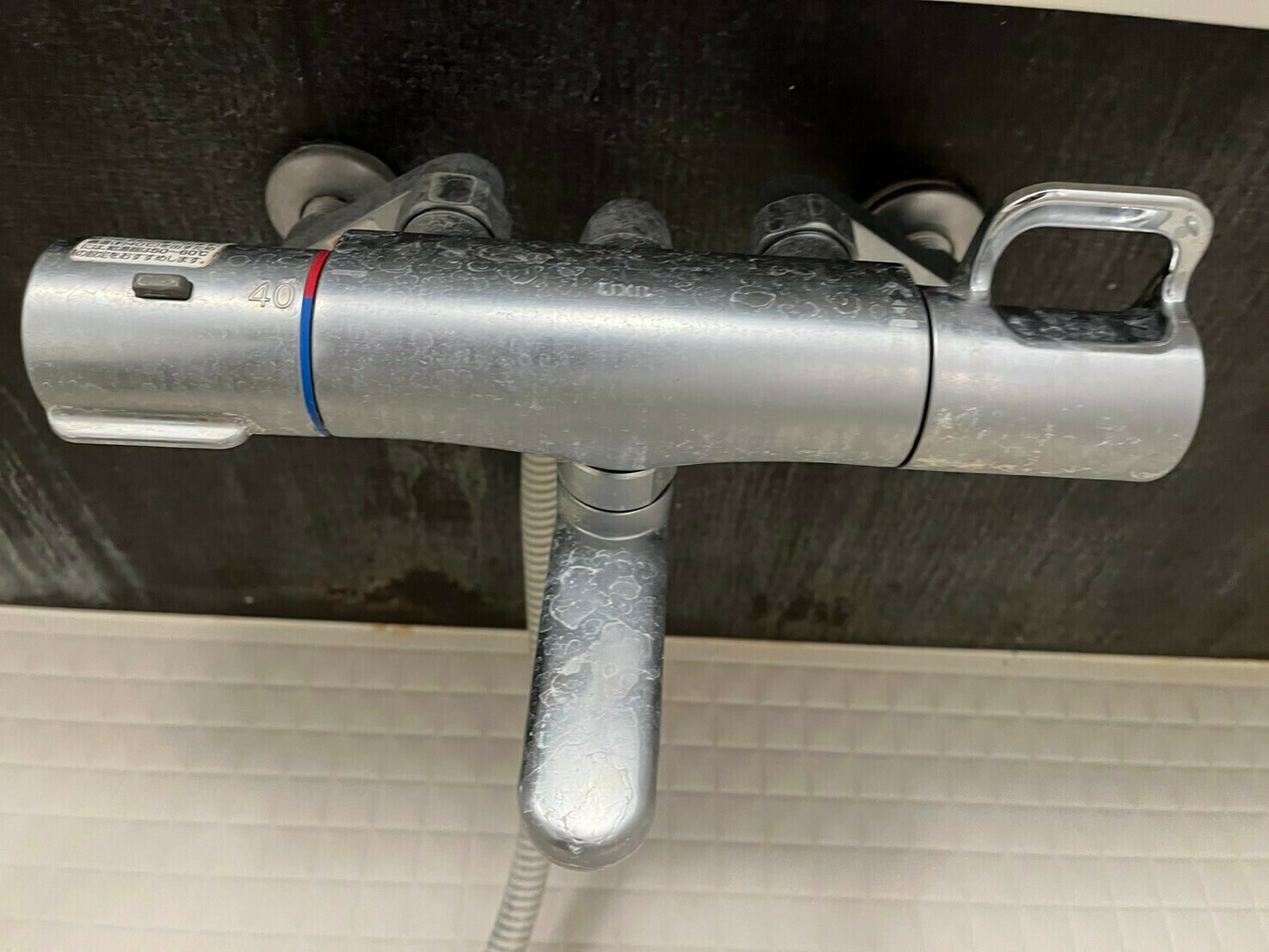 鏡同様、蛇口もウロコ汚れでいっぱいになっていますね😣