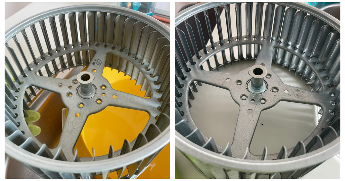 画像だとあまり汚れているようには見えないかもしれませんが、レンジフードの中の部品は普段の料理などで吸い込んだ油でベタベタになっています。