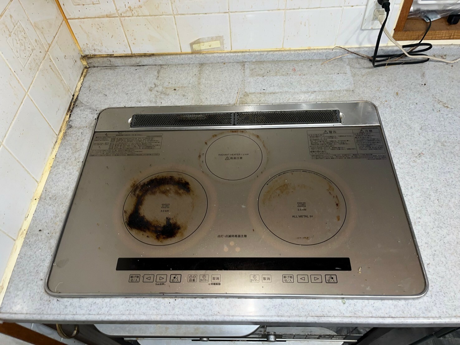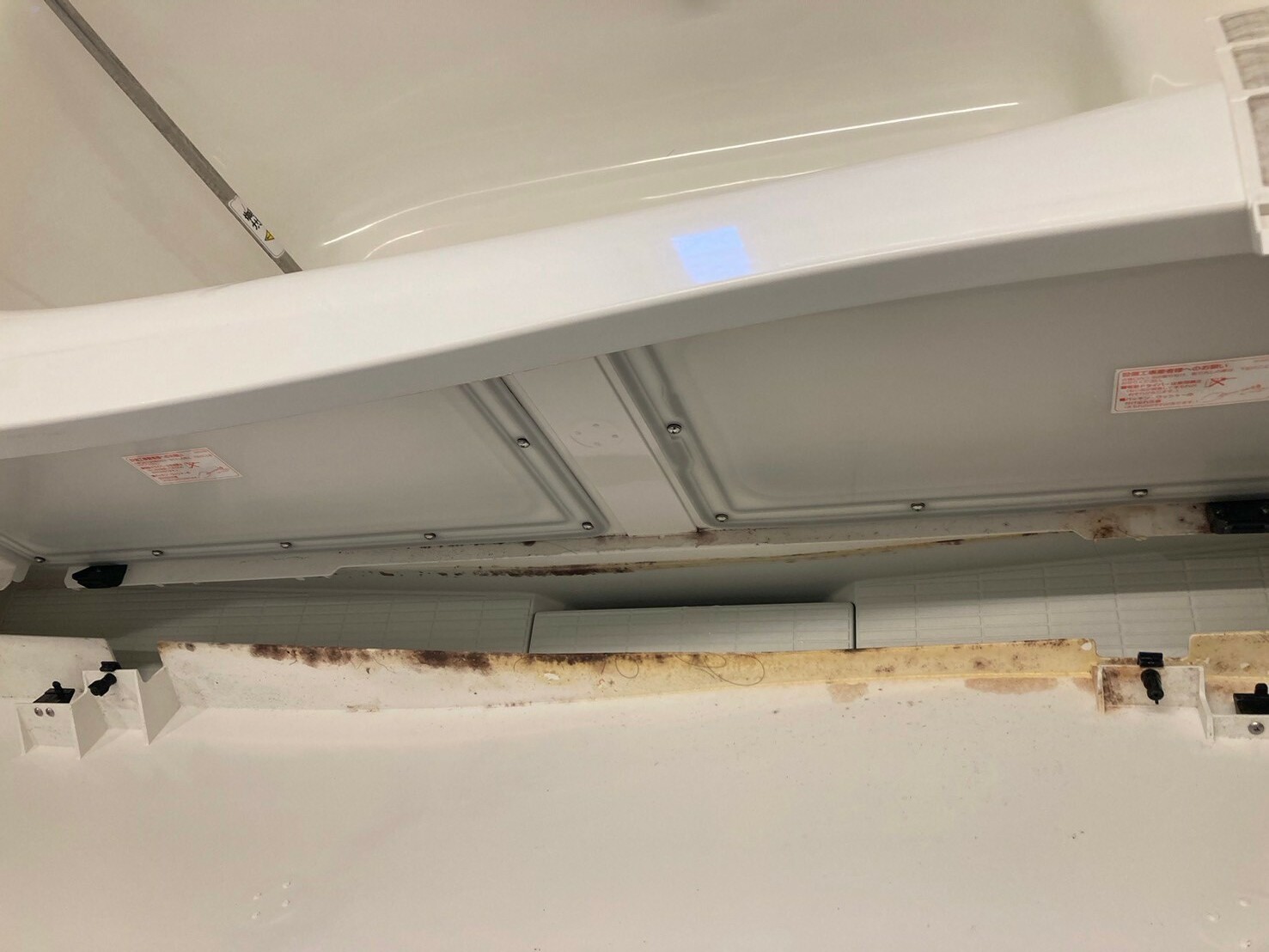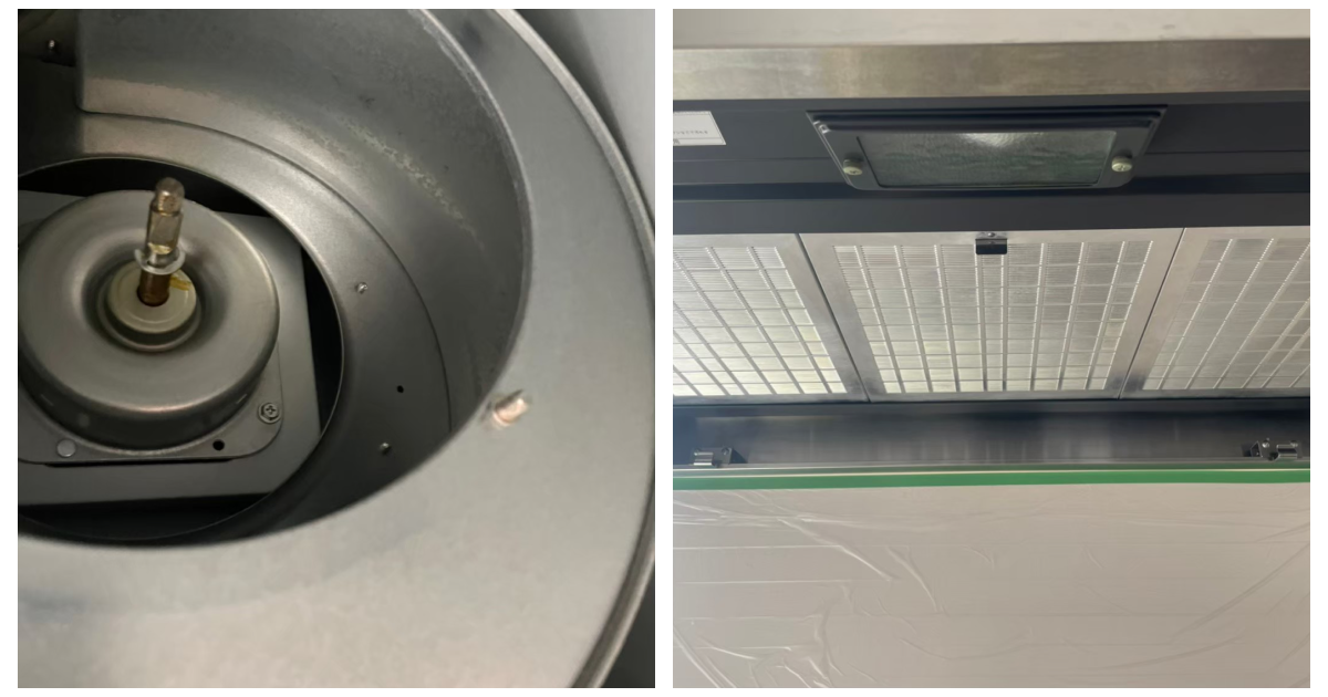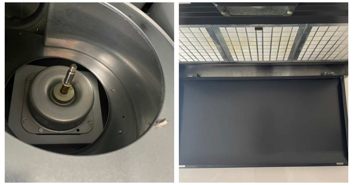 こちらがハウスクリーニングを行う前の画像です。こちらも画像だとわかりづらくて申し訳ないですが、レンジフードの内部には油汚れがびっしりと溜まっています。