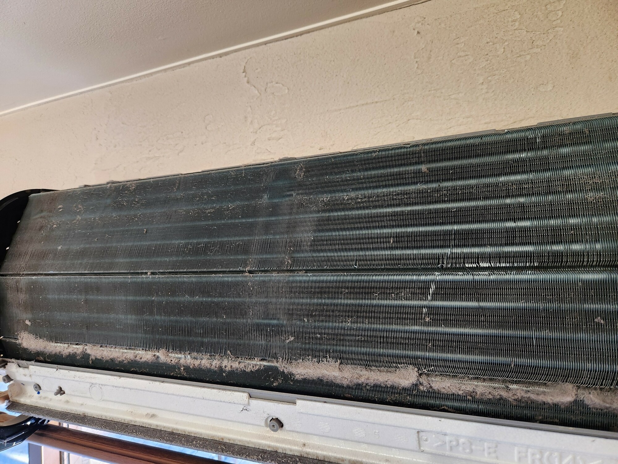今回お邪魔した横浜市の中区のお家では、クリーニングを行う前のアルミフィンはこのような状態でした。