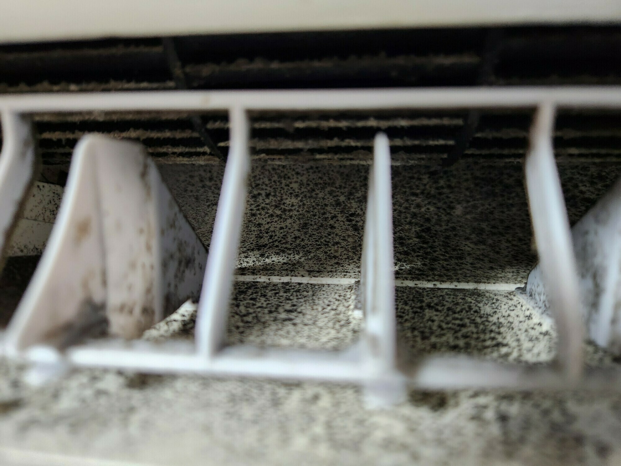 送風ファンには埃汚れ、送風口にはたくさんの黒カビが…😨😨
