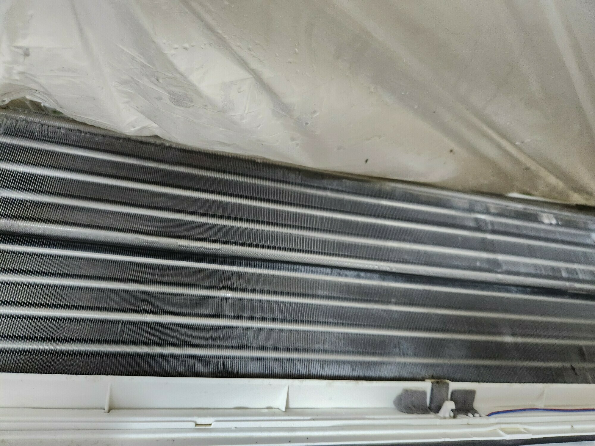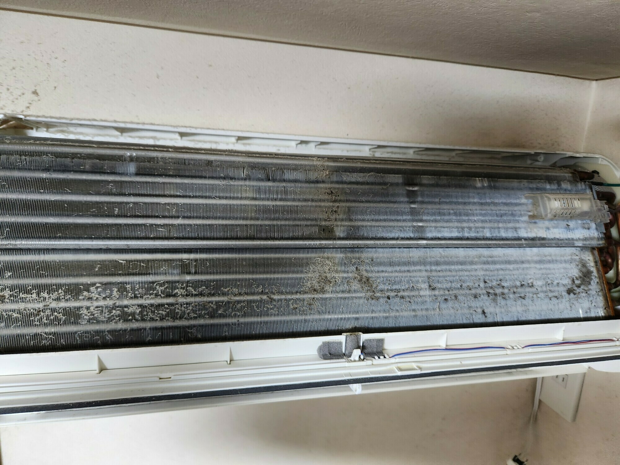 埃とカビがアルミフィンにびっしり詰まっていますね💦