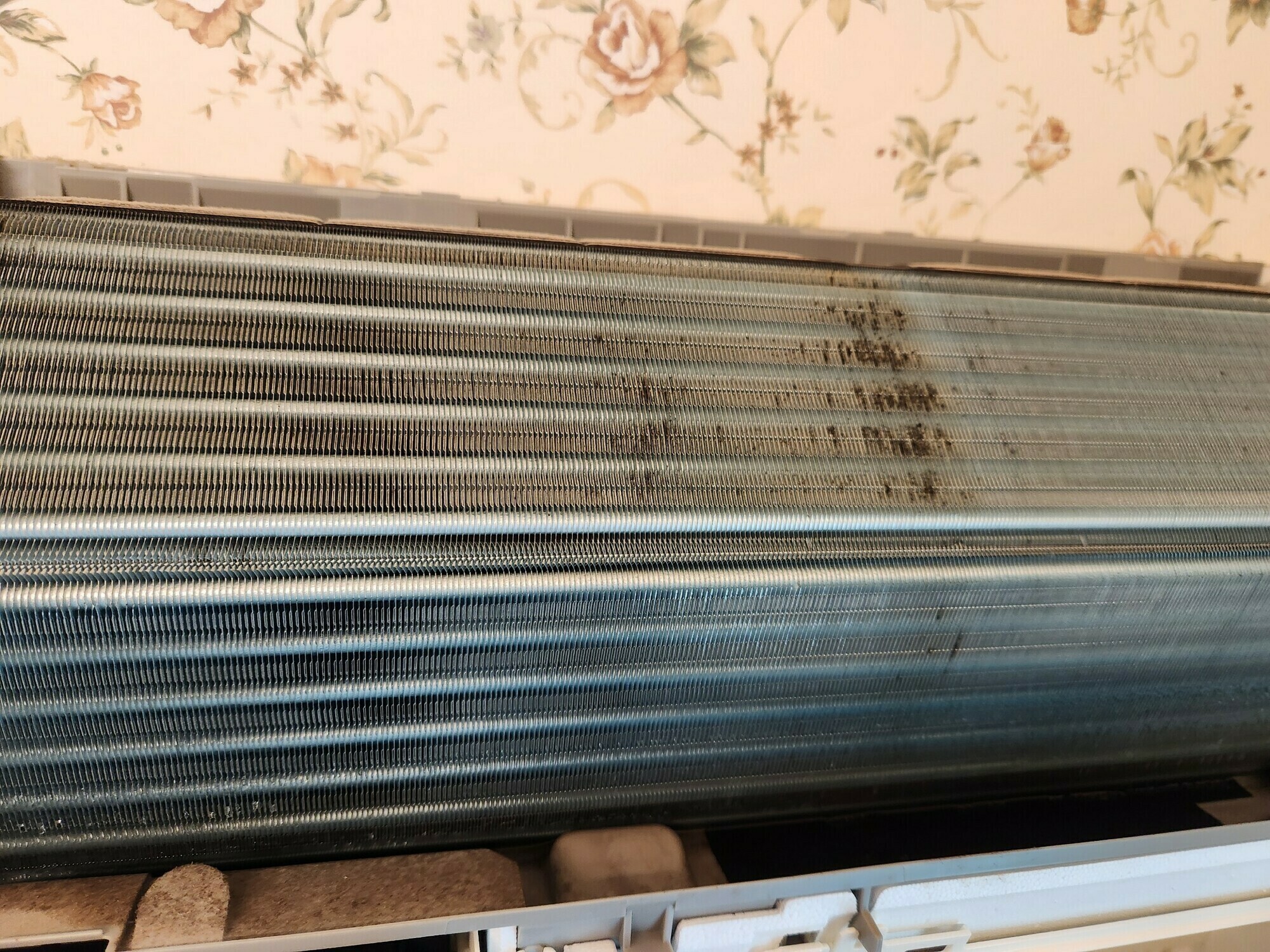 こちらのエアコンのアルミフィンは埃が目立ちます😐