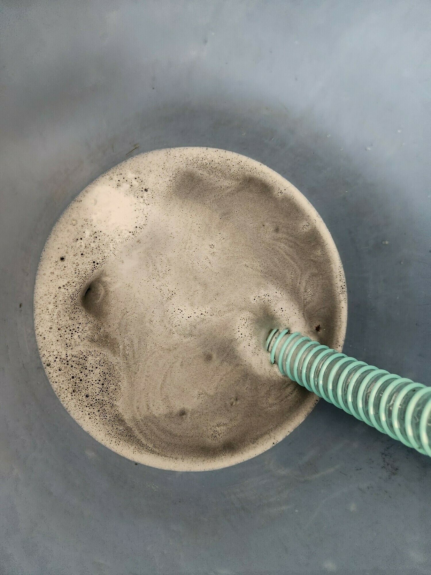 泡立って見にくいですが、泡の下には黒い汚水が出てきました💦