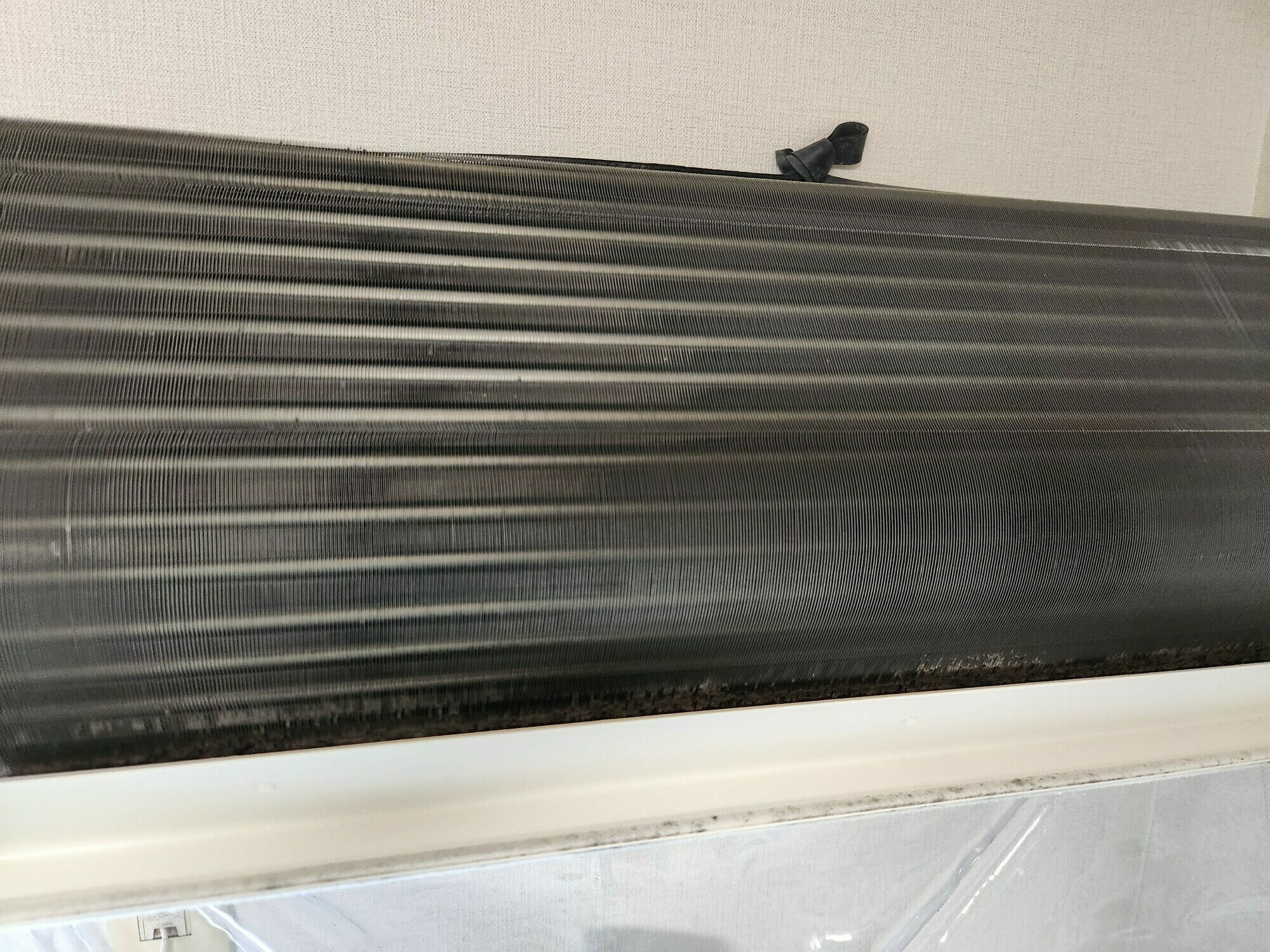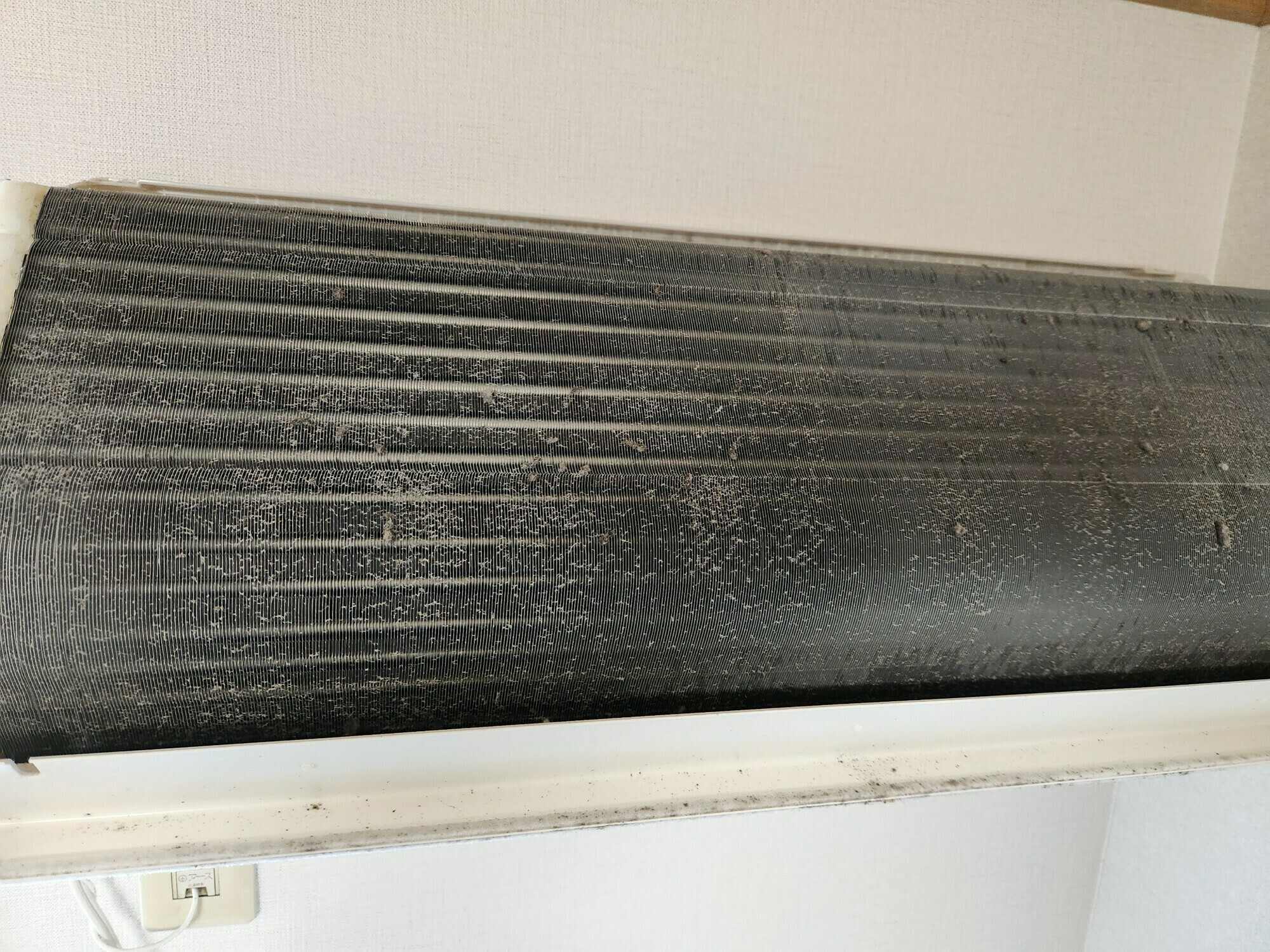 アルミフィンには埃と黒カビが埋まっています💦よく見ると埃がダマになっている箇所もありますね😱
